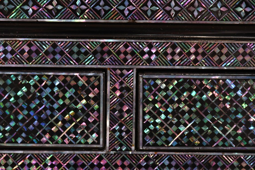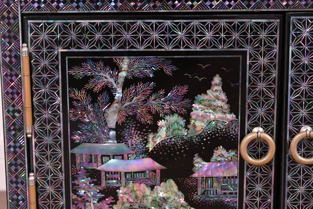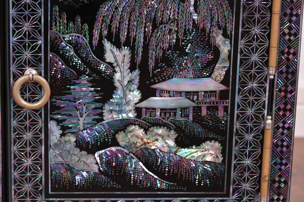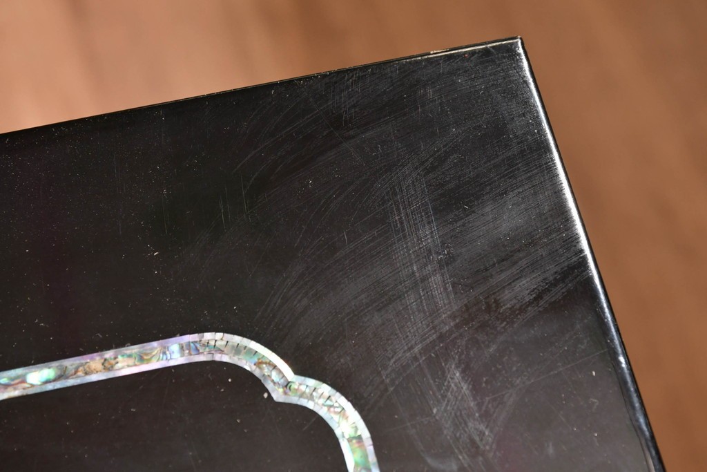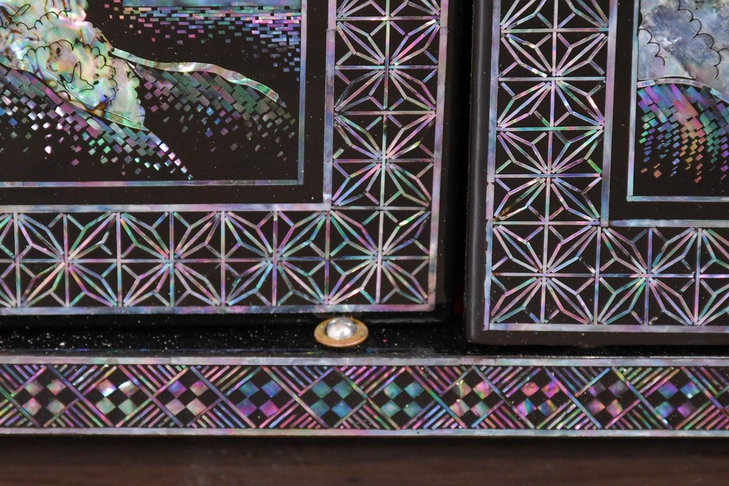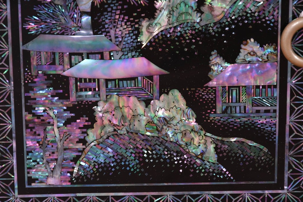 貝片を丁寧に組み合わせた風景文が印象的で、工芸的な趣を感じる仕上がりとなっています。