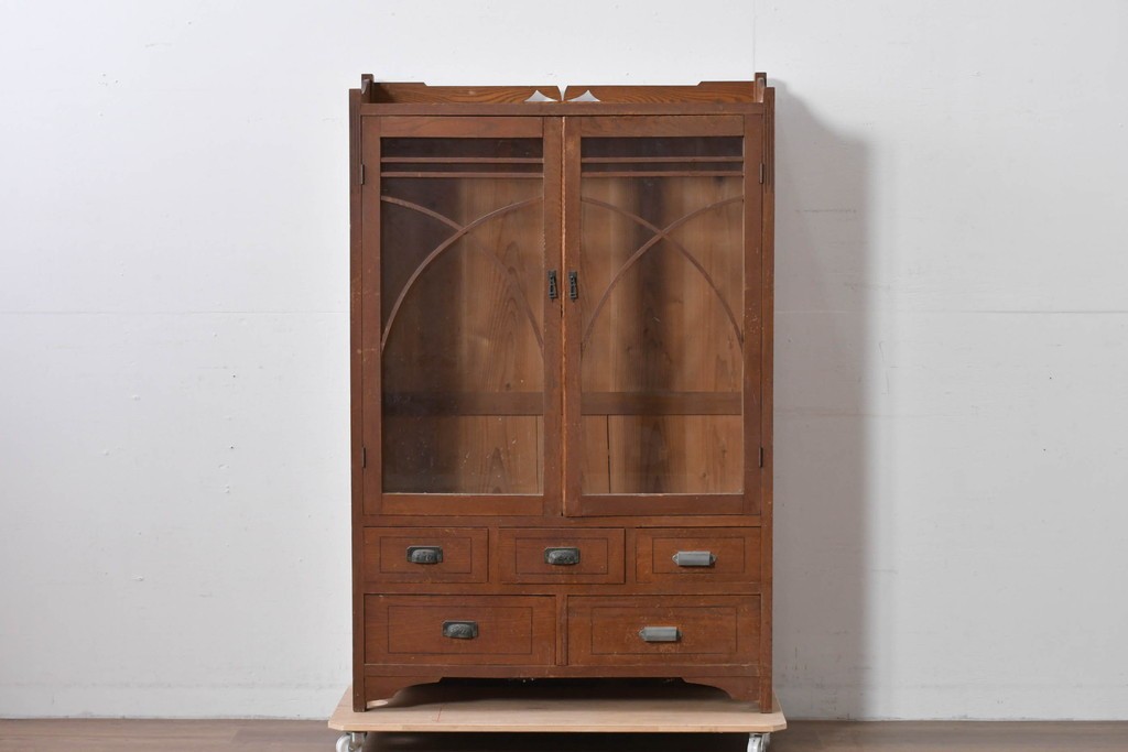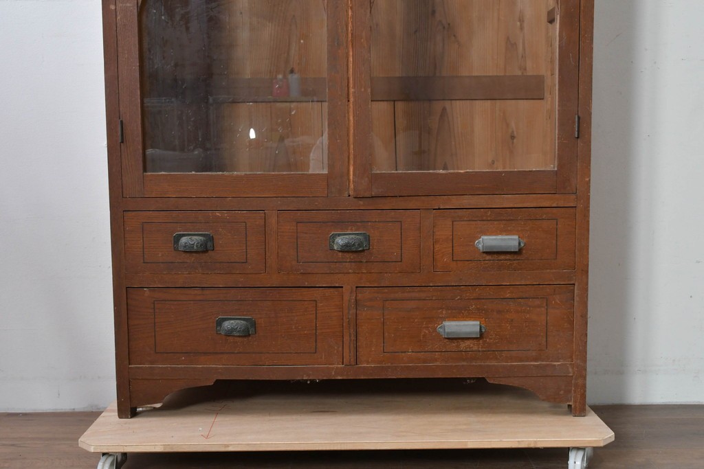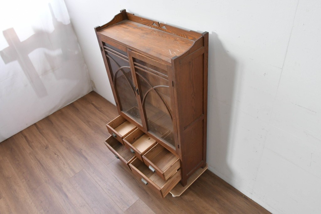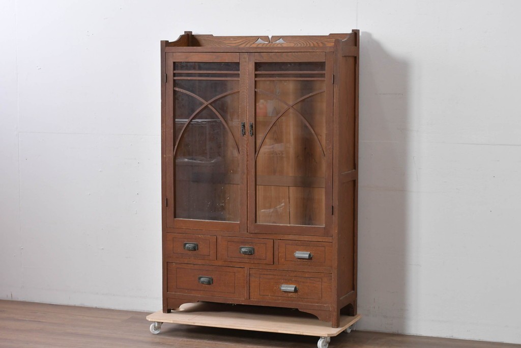 昭和初期につくられた和製アンティークの栗材本箱です。