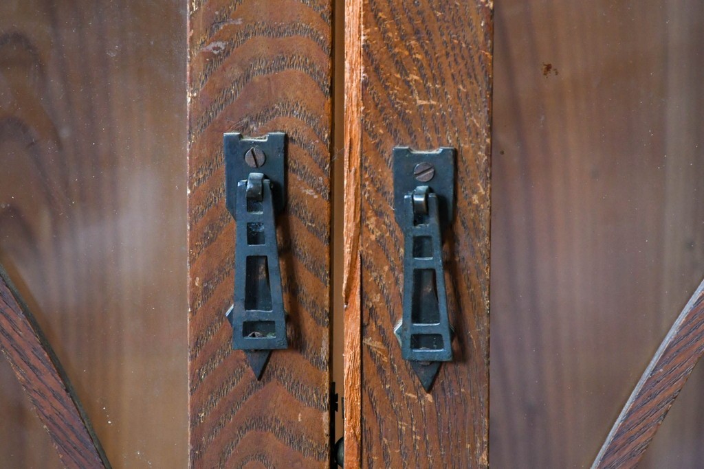 扉には優雅な曲線の桟が施され、当時の職人による丁寧な手仕事が感じられます。