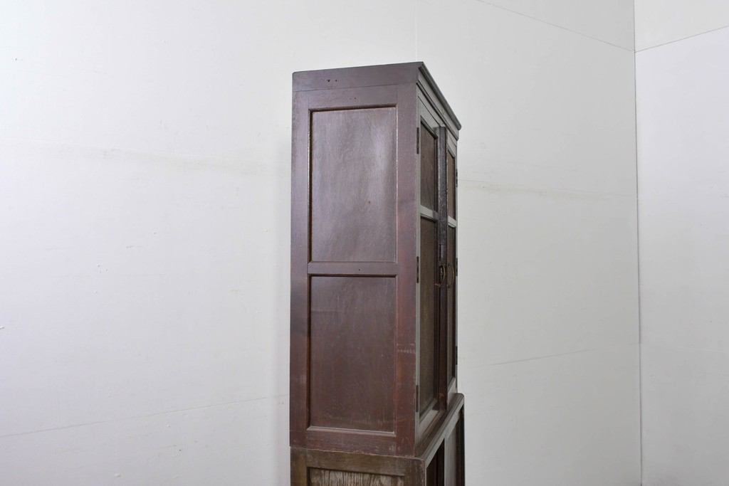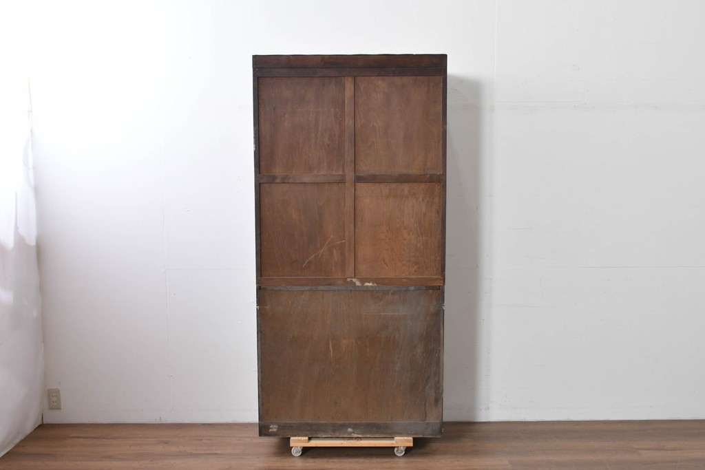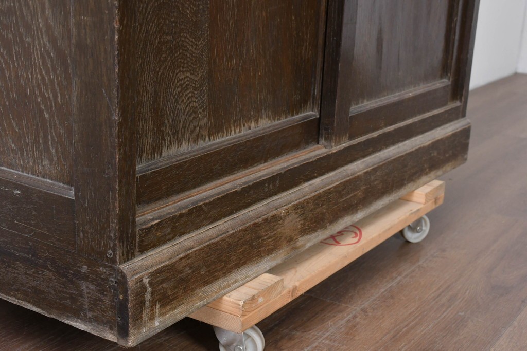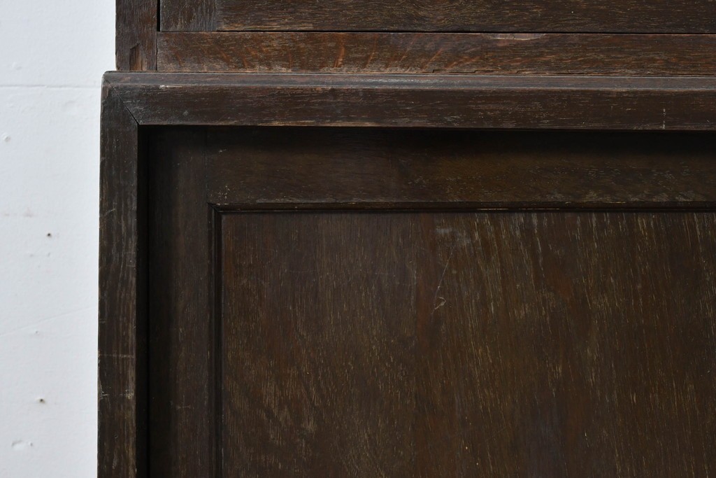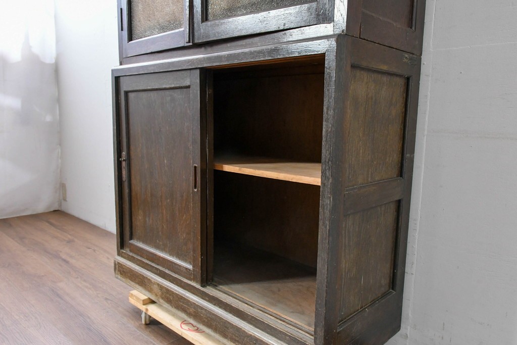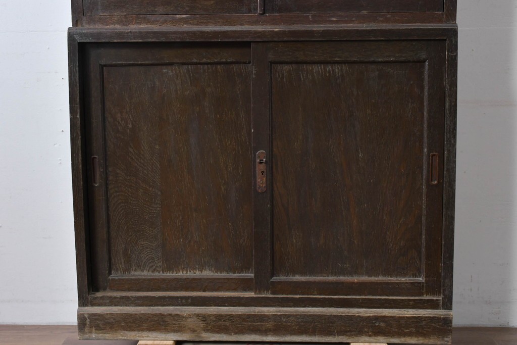 昭和初期〜中期頃に作られた、ナラ材の二段重ね収納棚です。