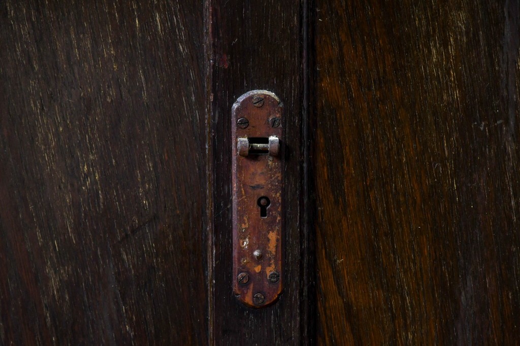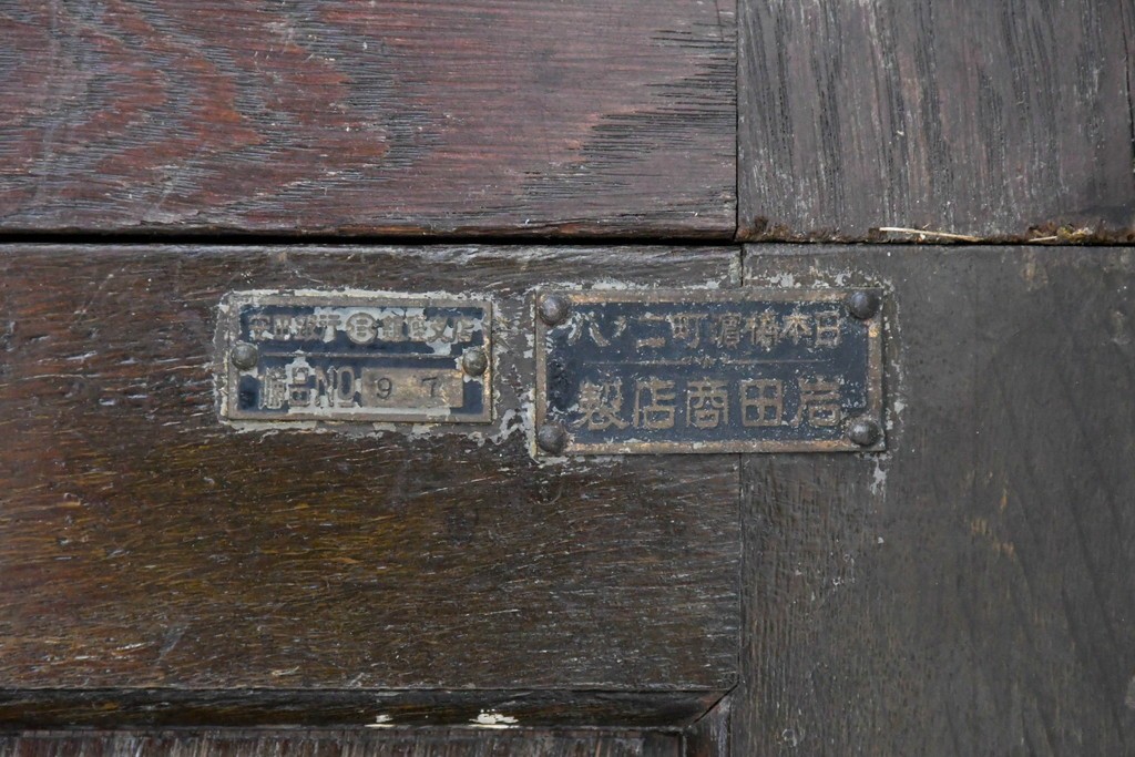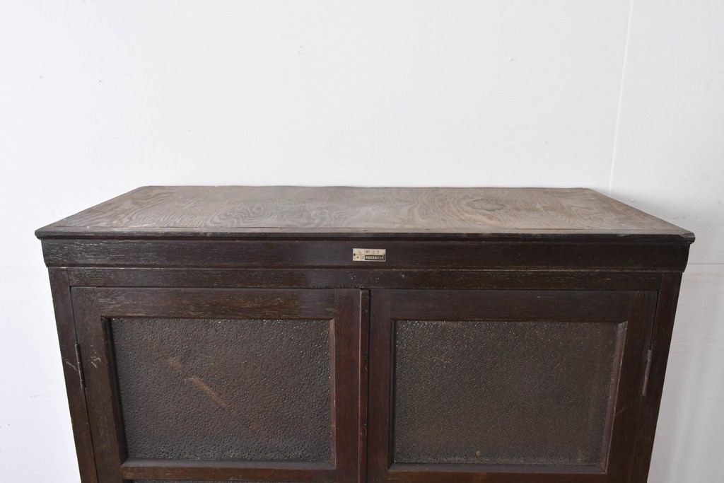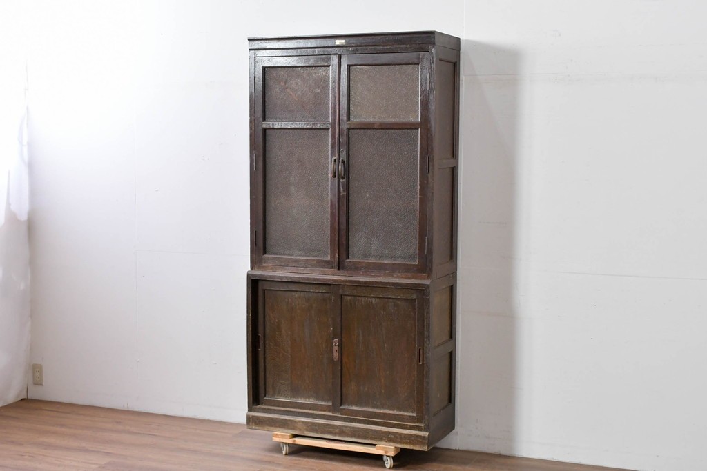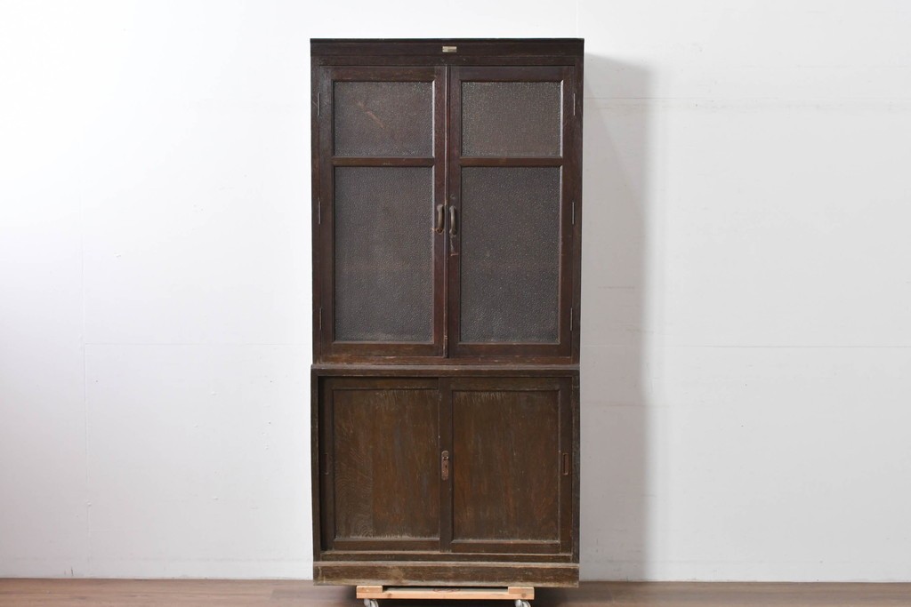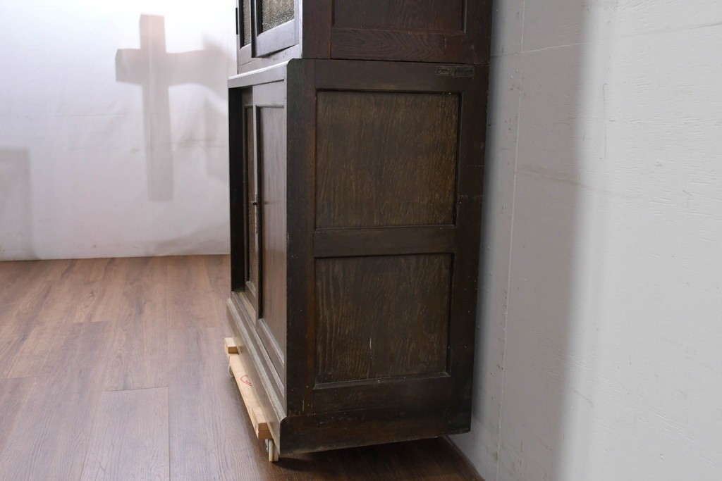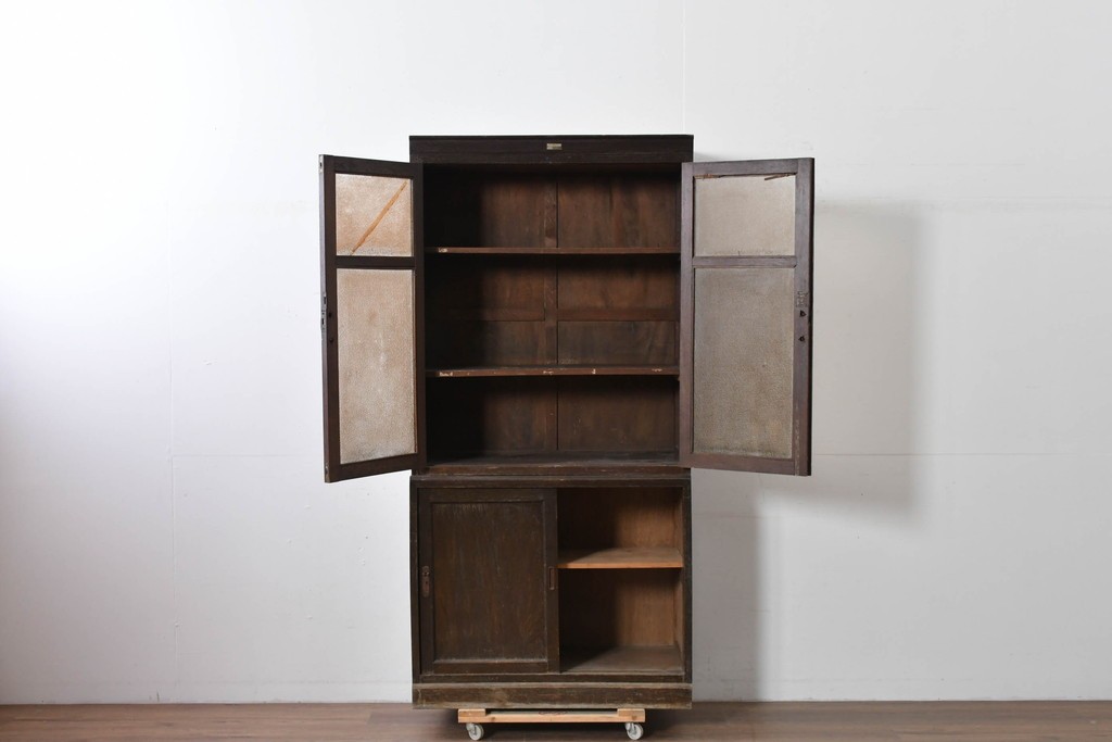昭和初期〜中期頃に作られた、ナラ材の二段重ね収納棚です。