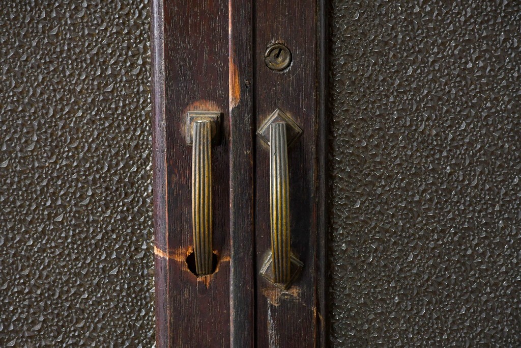 上段は凹凸のある型板ガラス(梨地(なしじ)ガラス)を使用した開き戸、下段は木製の引き戸になっており、収納内容に応じて使い分けができます。