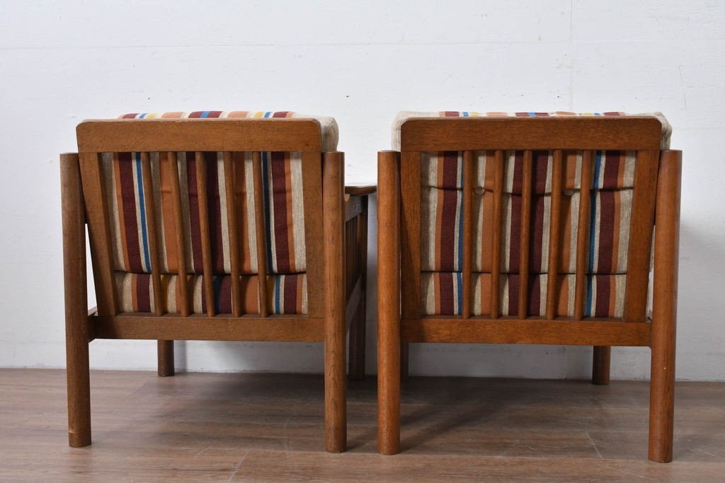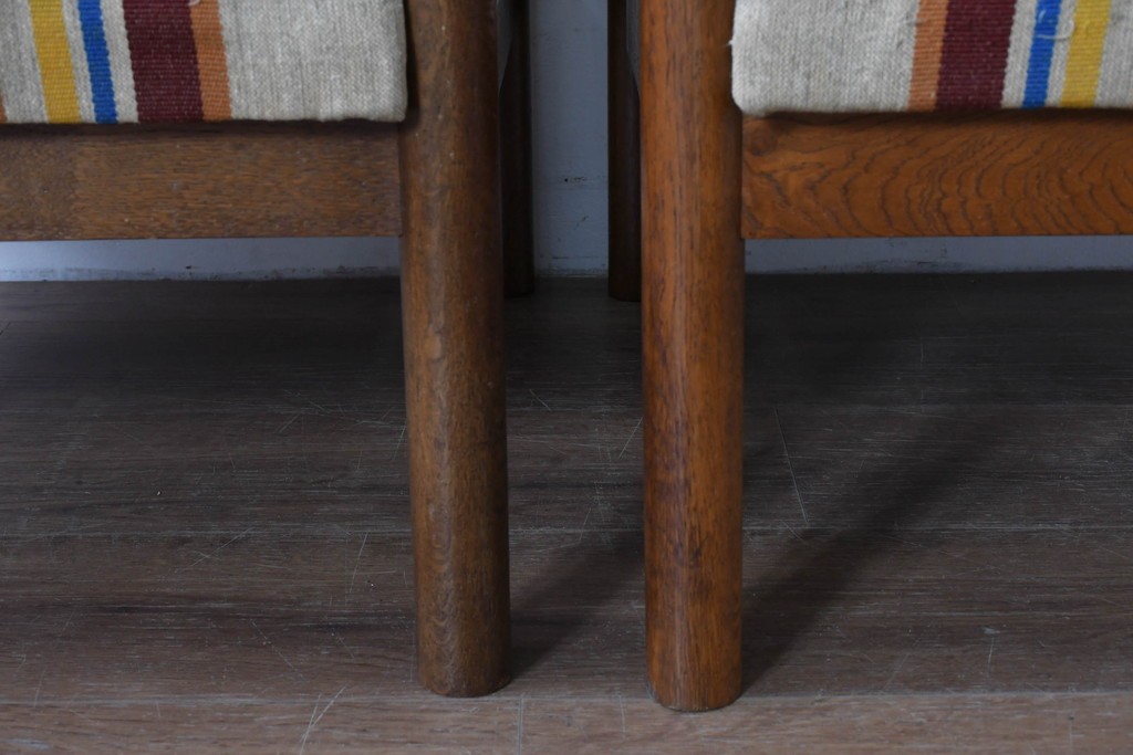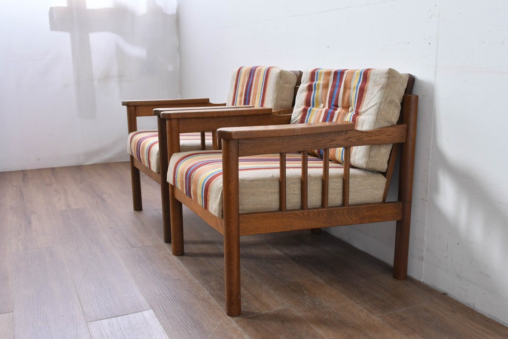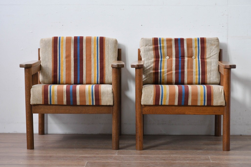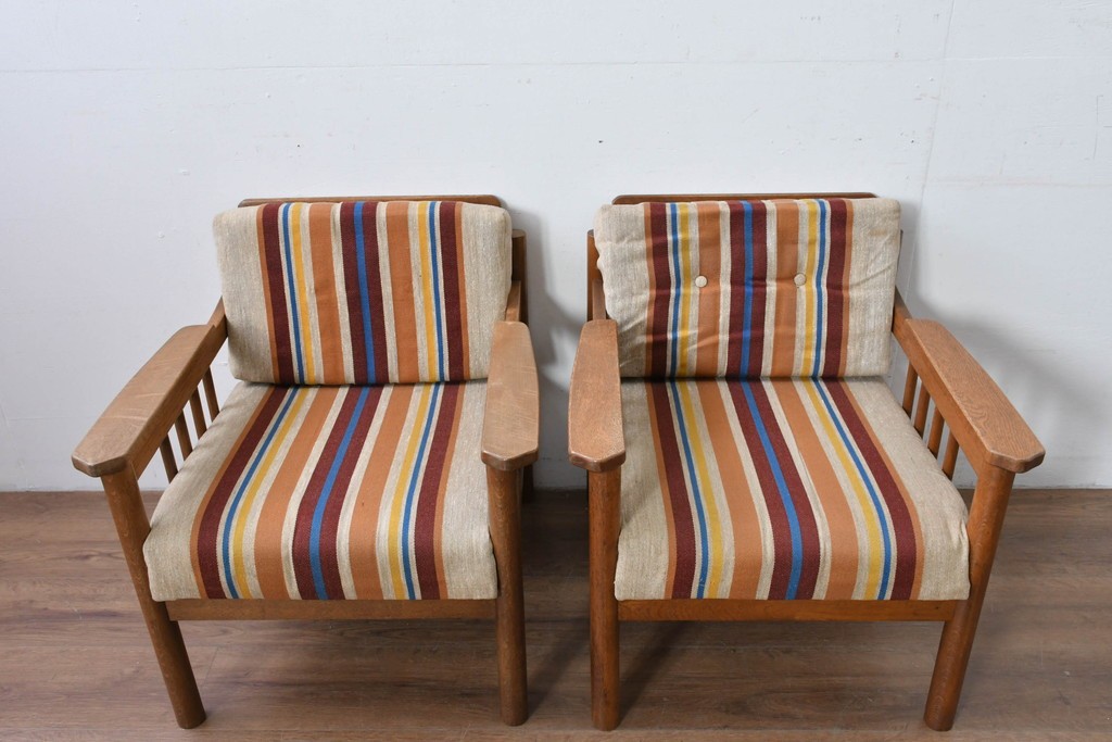 ナラ材を用いた、温かみのあるレトロデザインのイージーチェア2脚です。