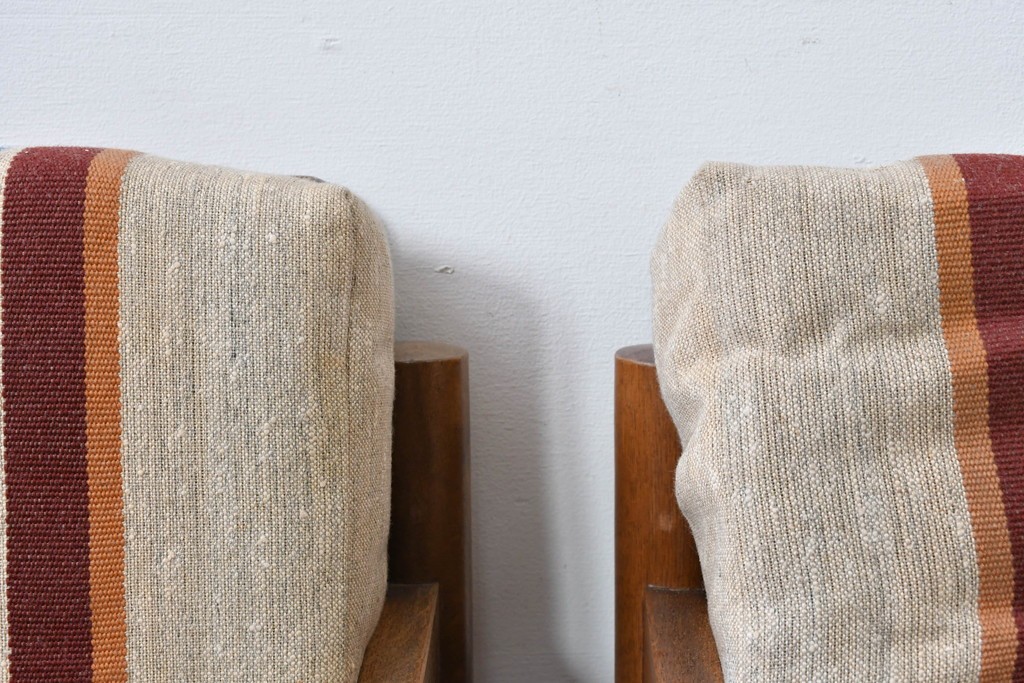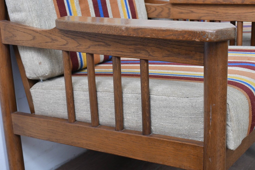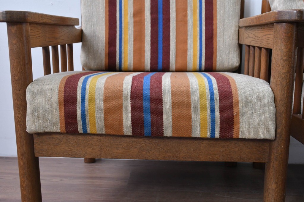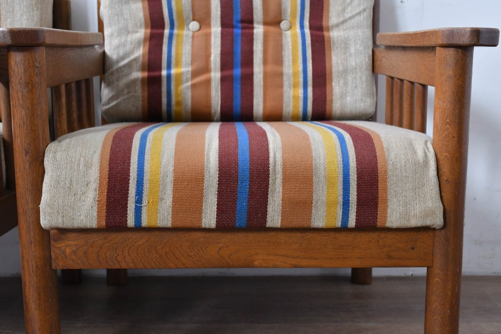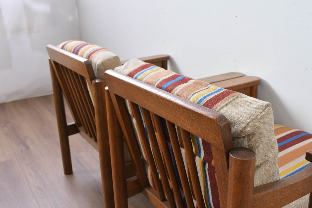 ナラ材を用いた、温かみのあるレトロデザインのイージーチェア2脚です。