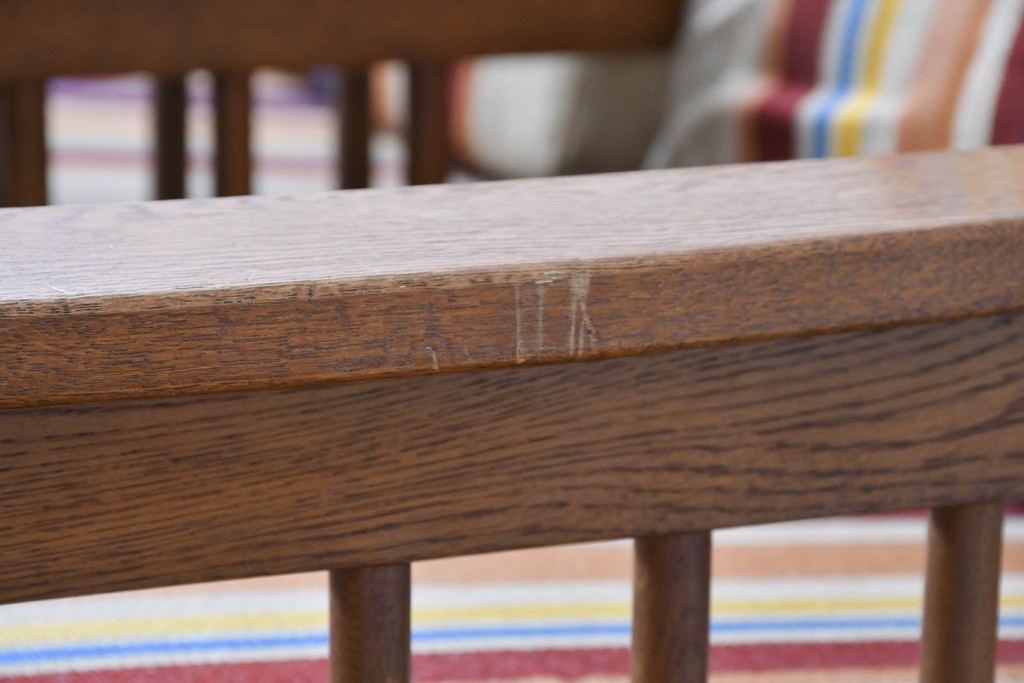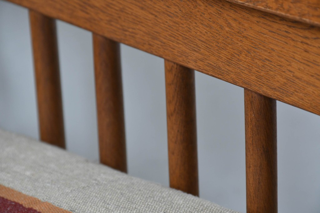背面や側面に配された桟や、ナラ材ならではの美しい木目が味わい深く、和洋どちらのインテリアにも馴染みます。