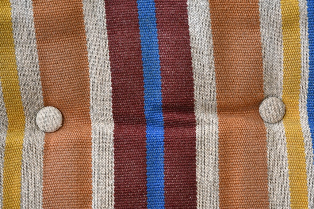 ストライプ柄のクッションがアクセントとなり、ほどよい存在感を添えています。