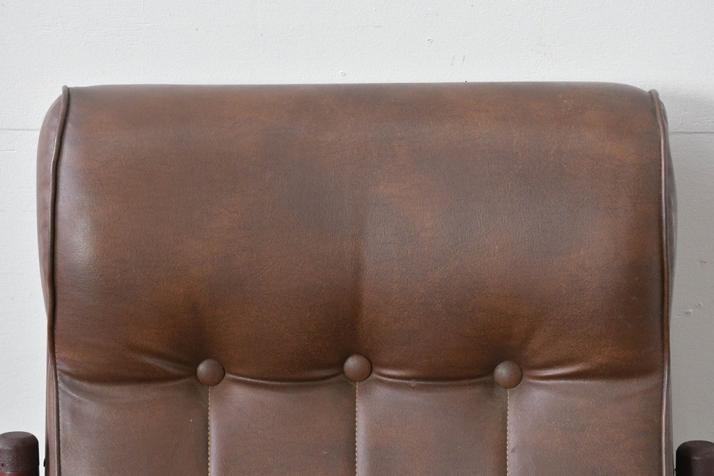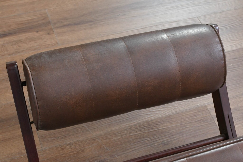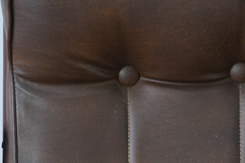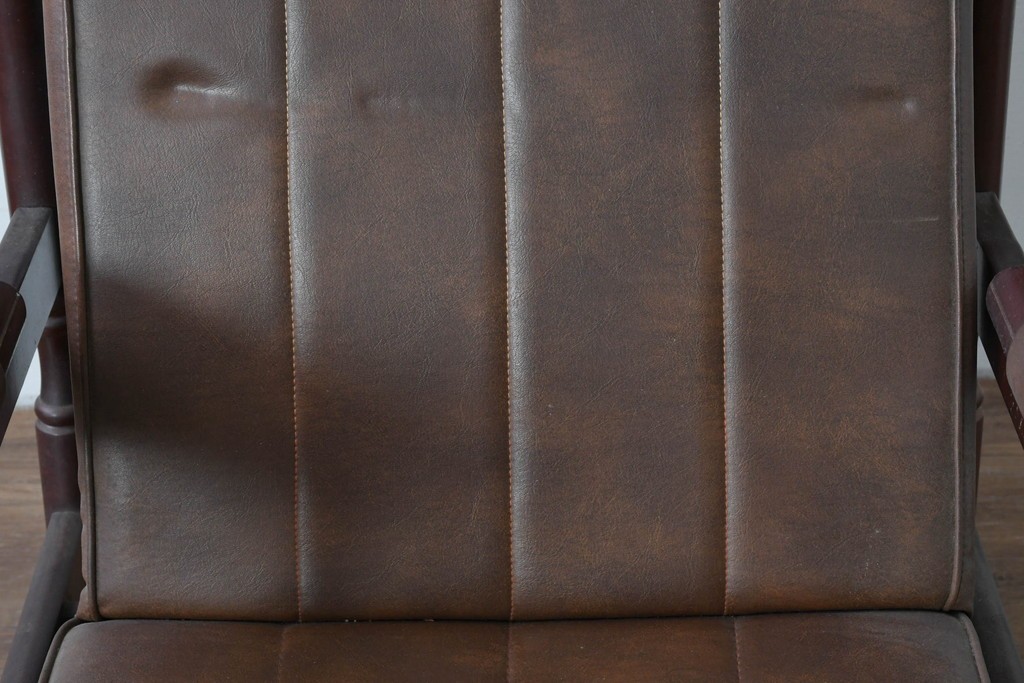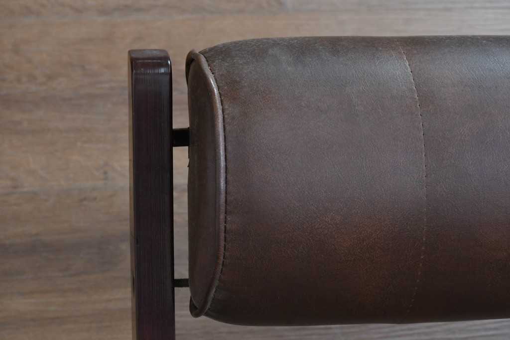 背もたれから座面にかけてビニールレザーが張られ、落ち着いた色調と柔らかな風合いが空間に穏やかな雰囲気を添えます。