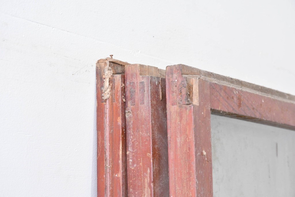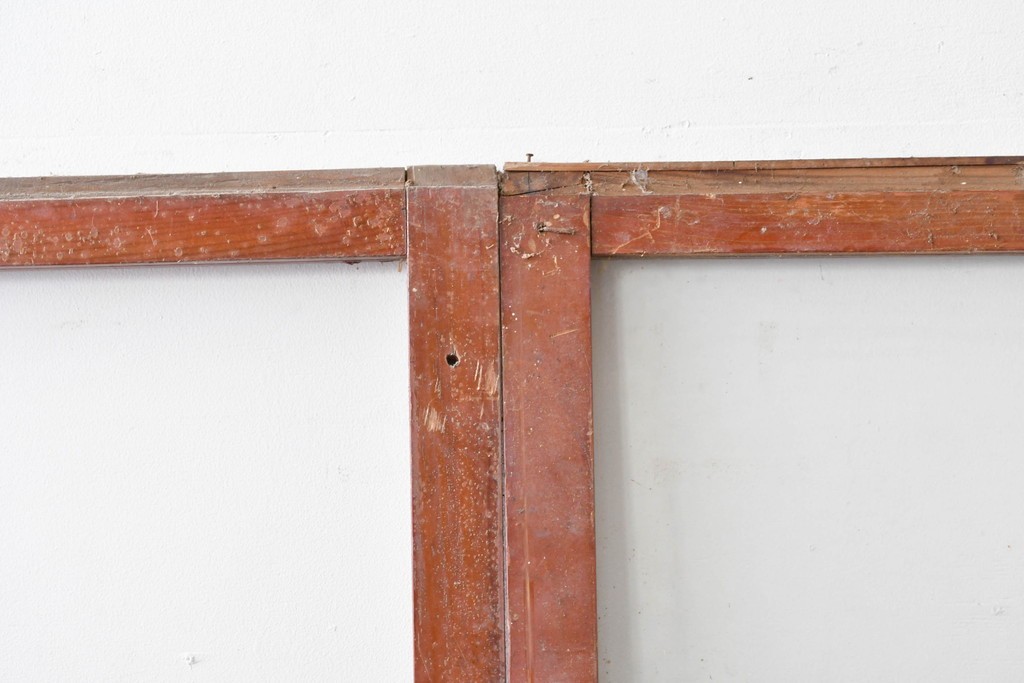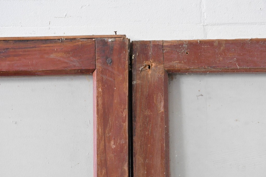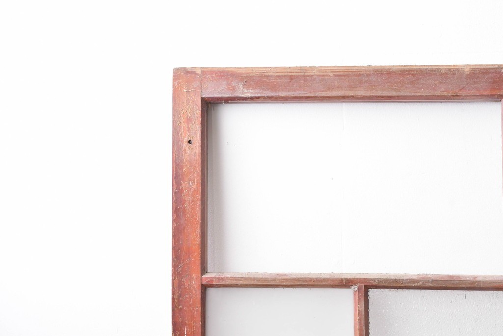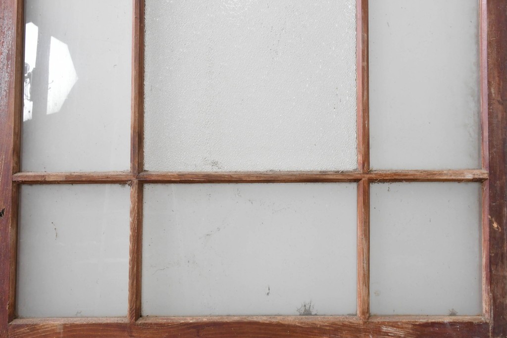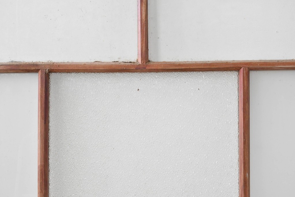 木枠には長い年月を経て生まれた渋みのある色合いが残り、アンティーク建具ならではの魅力があふれています。部分的に現れる木肌の風合いが一枚一枚に個性を与え、古い建材の味わいを存分に楽しむことができます。和室から古民家風インテリアまで幅広く調和し、空間全体を落ち着いた印象に導きます。