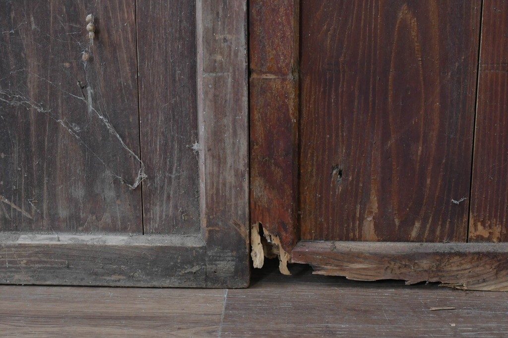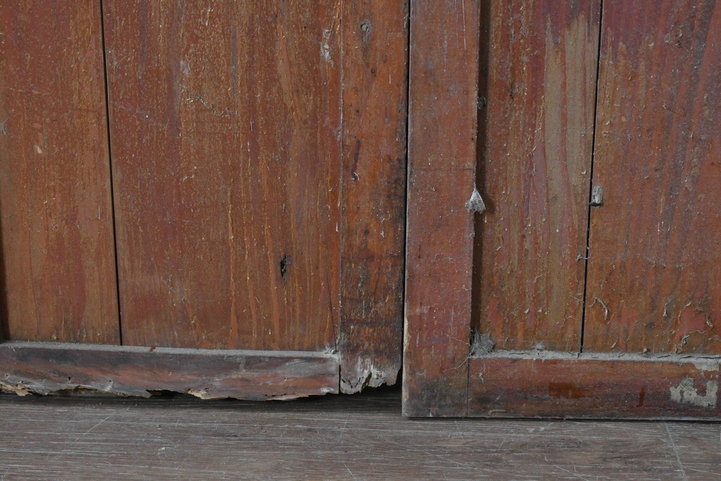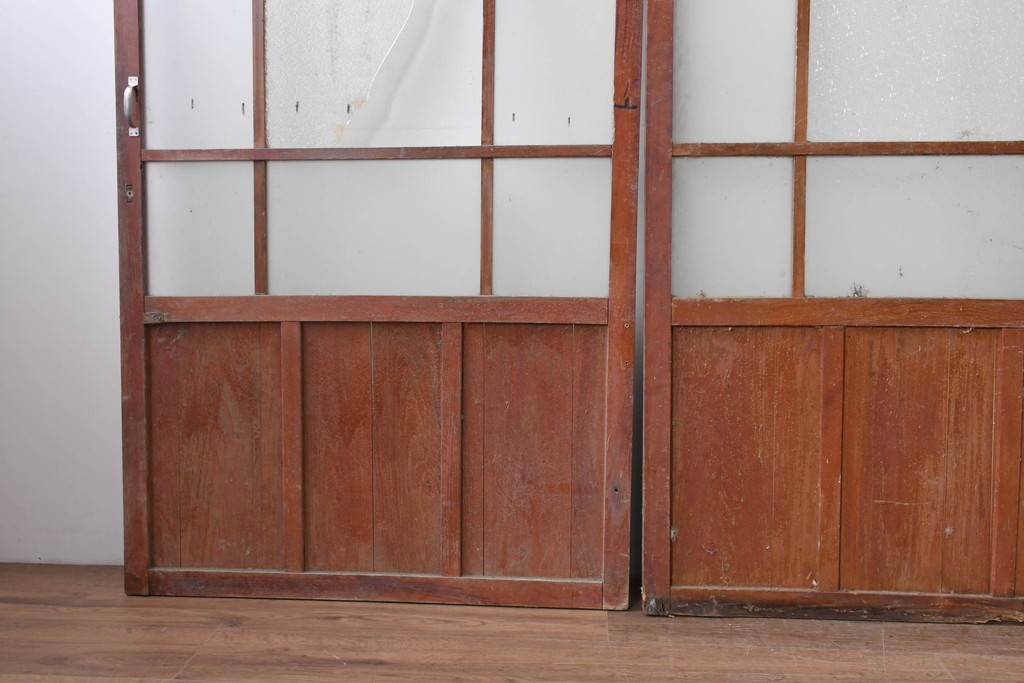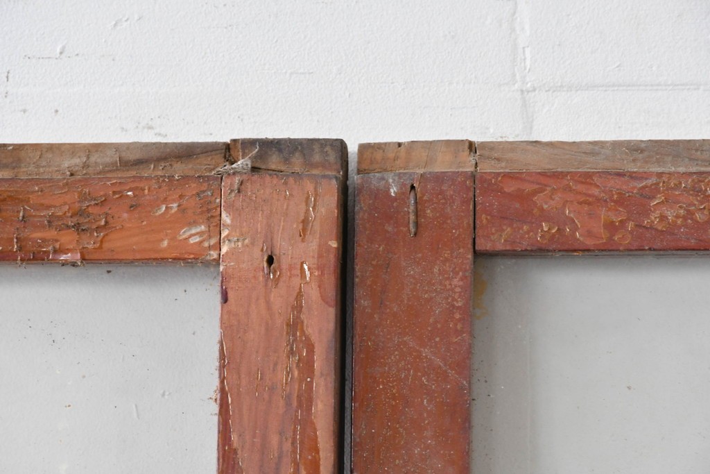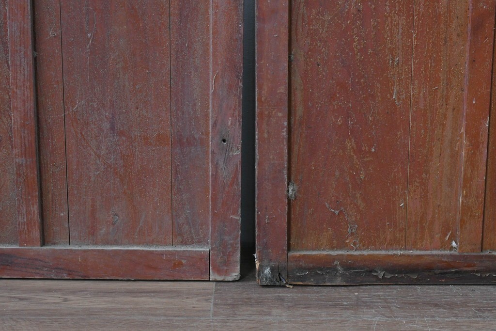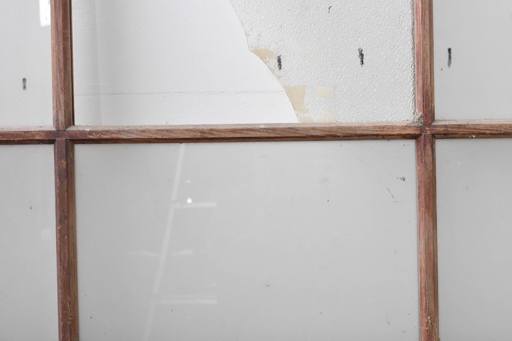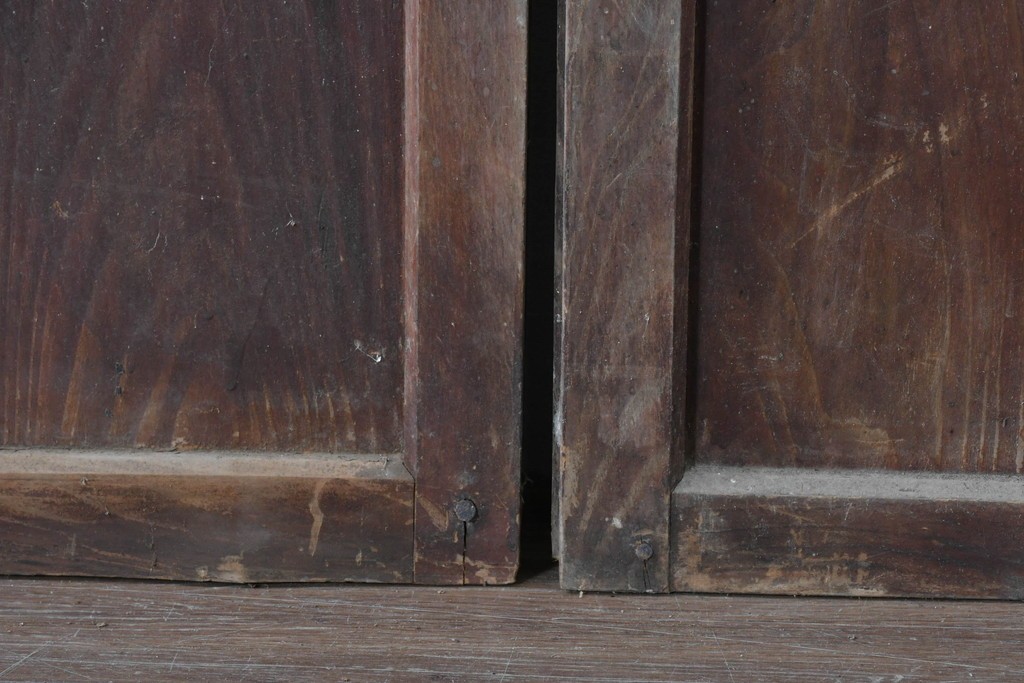 木枠には長い年月を経て生まれた渋みのある色合いが残り、アンティーク建具ならではの魅力があふれています。部分的に現れる木肌の風合いが一枚一枚に個性を与え、古い建材の味わいを存分に楽しむことができます。和室から古民家風インテリアまで幅広く調和し、空間全体を落ち着いた印象に導きます。