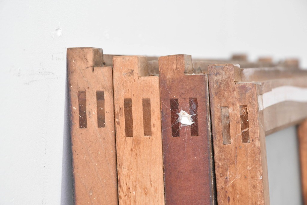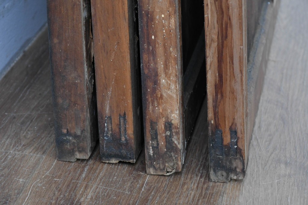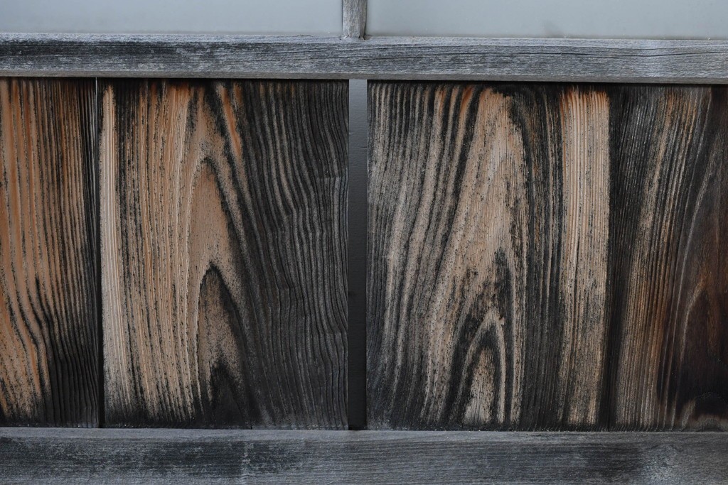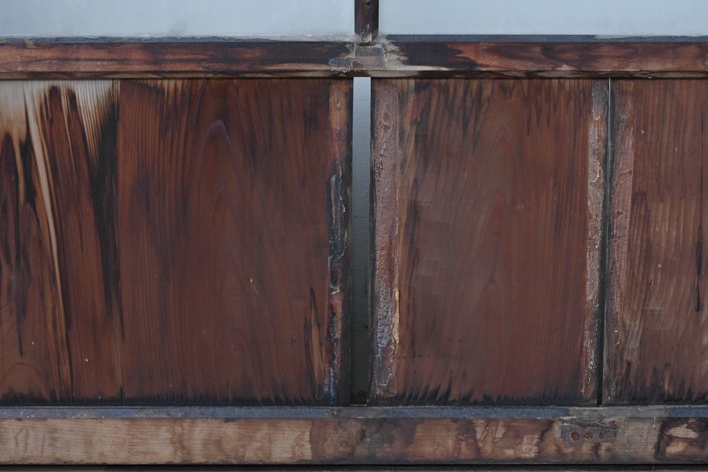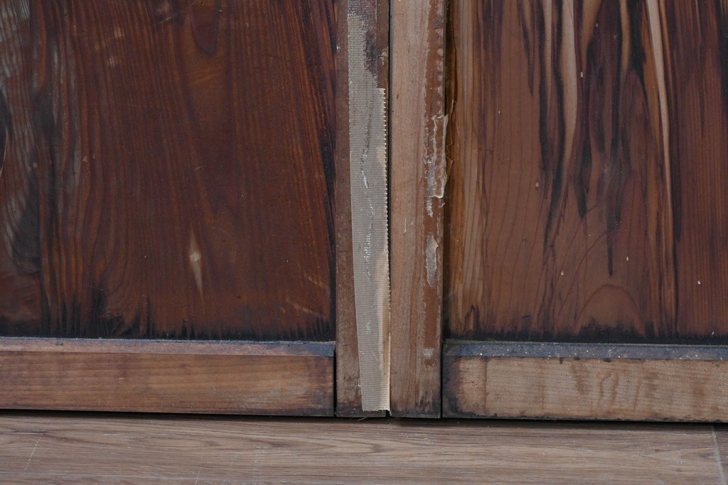 下部の板材には、経年で深く味わいを帯びた独特の木目が現れています。色の濃淡や揺らぎが自然に残り、古い建具ならではの表情を楽しめる点が魅力です。和空間はもちろん、素材感を活かしたインテリアとも相性が良く、空間に温かみと落ち着きを添えてくれます。