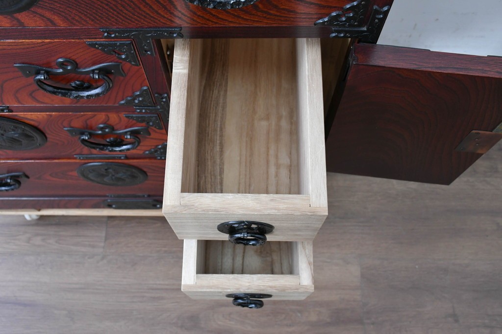 引き出し内部は明るい木肌で仕上げられており、和家具らしい丁寧なつくりが感じられます。