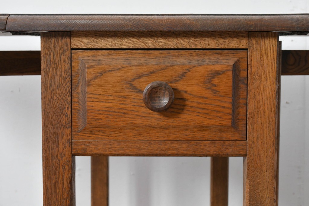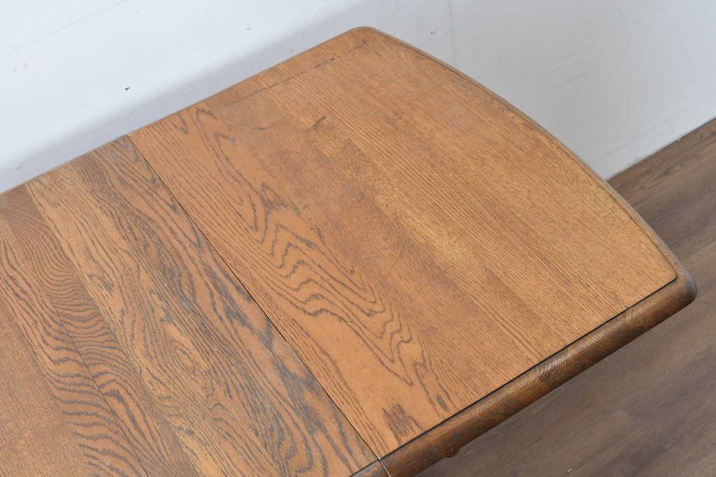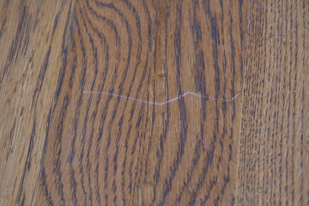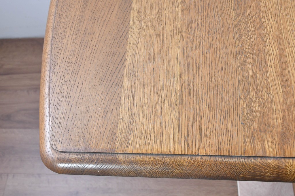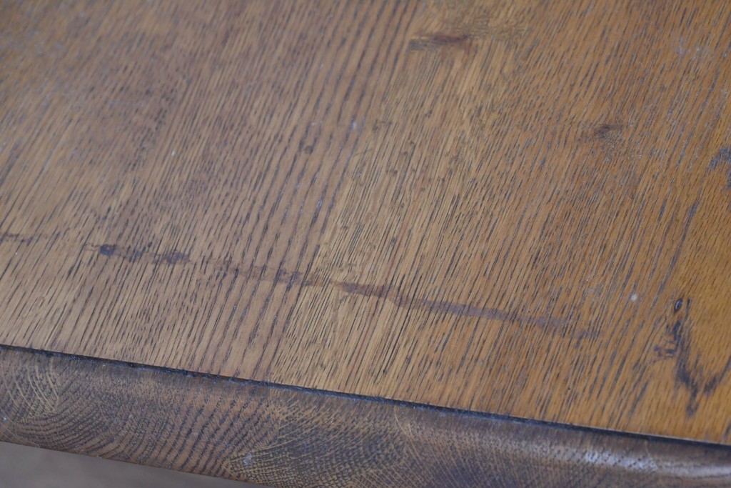 ナラ材ならではの力強い木目と、経年で深まった風合いが味わい深い雰囲気を醸し出しています。