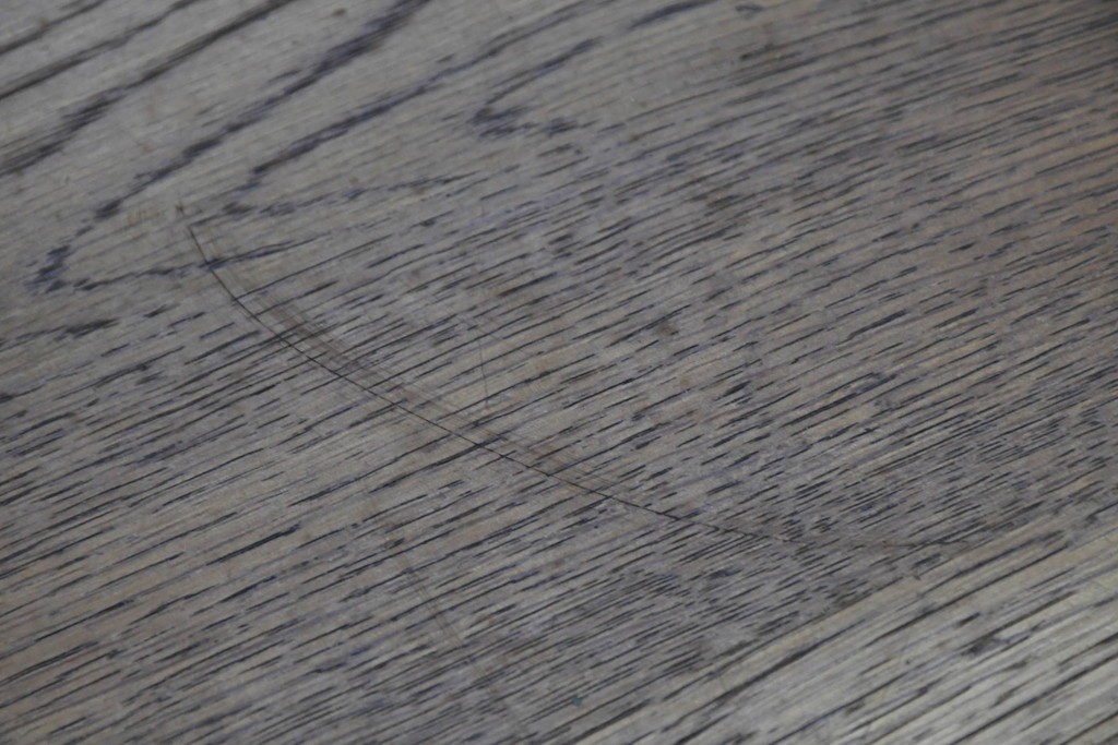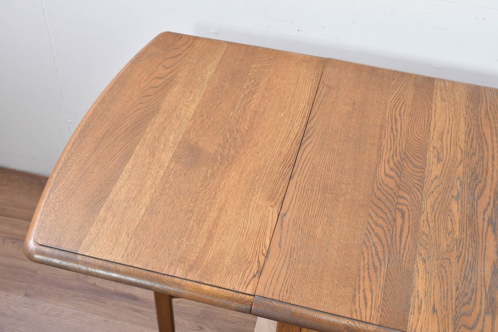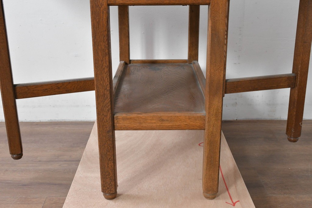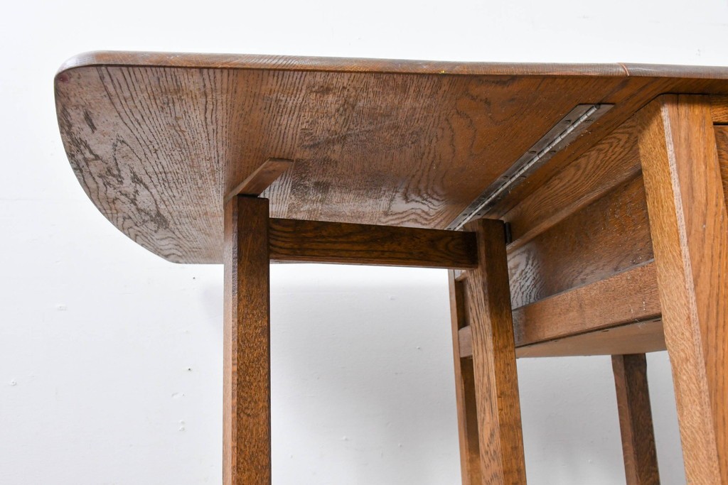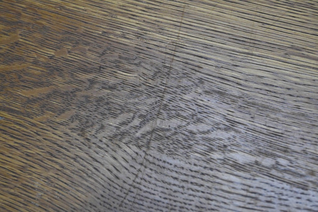 ナラ材ならではの力強い木目と、経年で深まった風合いが味わい深い雰囲気を醸し出しています。