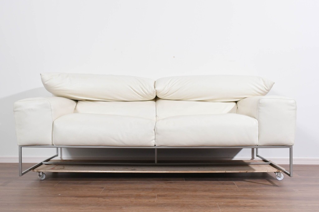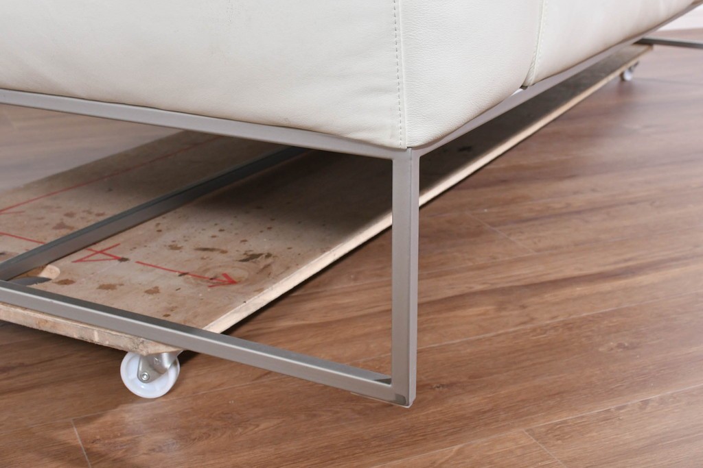 細身でシンプルなフレームと組み合わせることで軽やかさが生まれ、ボリュームのある座面でも圧迫感を感じさせません。