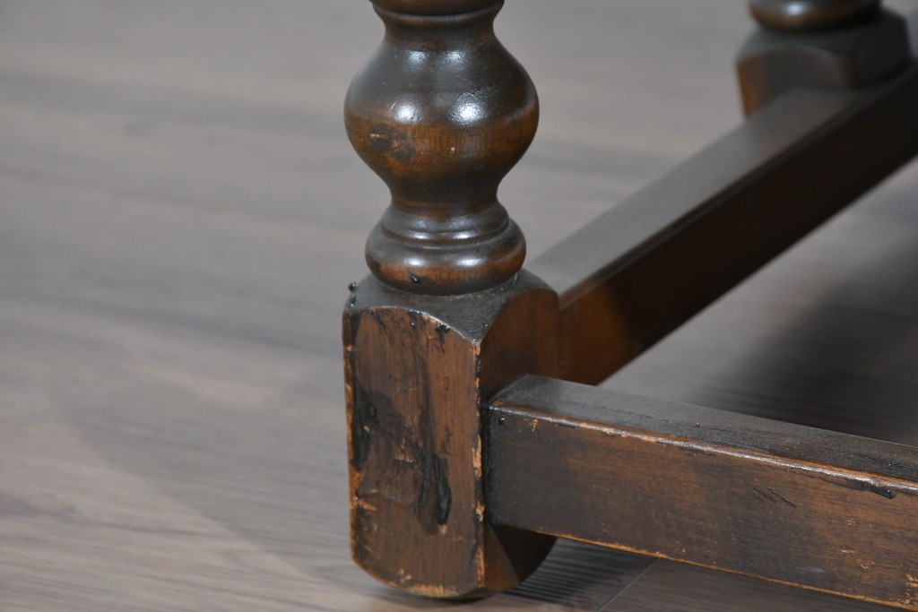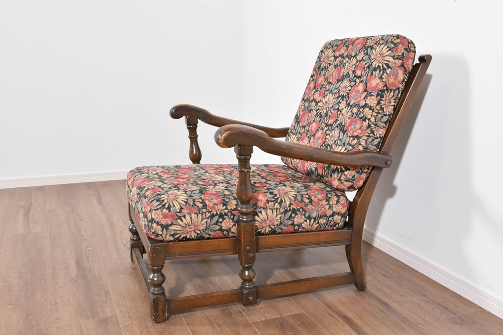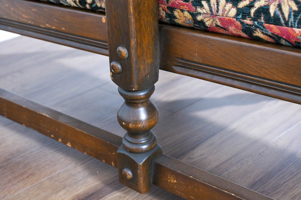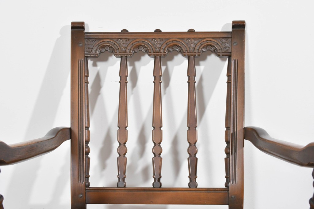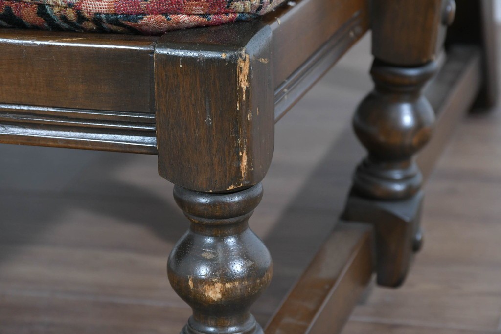 英国らしいクラシックな佇まいが魅力で、重厚感のある脚部デザインや味わい深い雰囲気が印象的な一脚です。