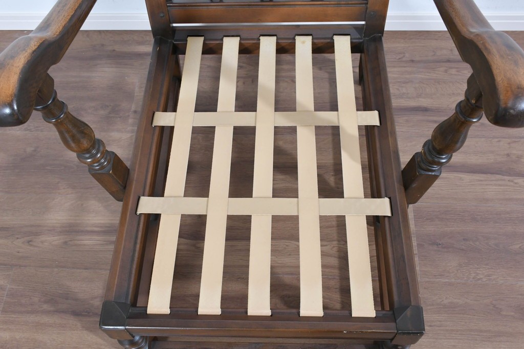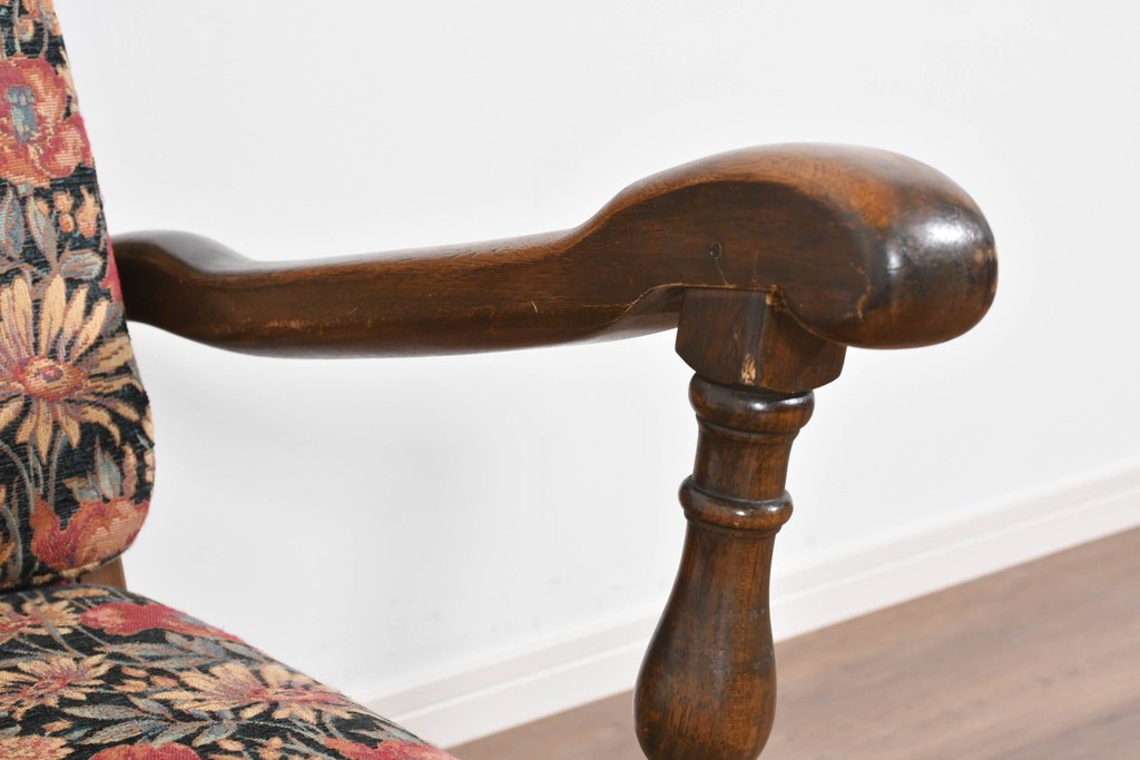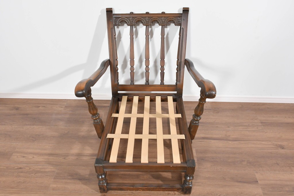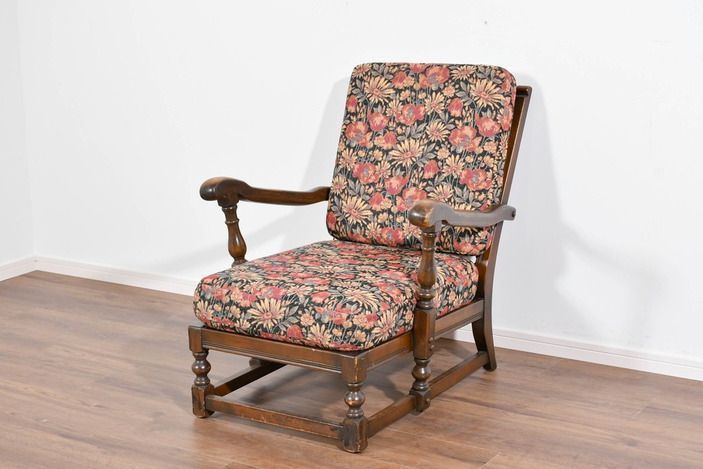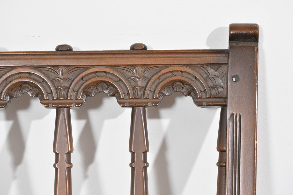 英国らしいクラシックな佇まいが魅力で、重厚感のある脚部デザインや味わい深い雰囲気が印象的な一脚です。