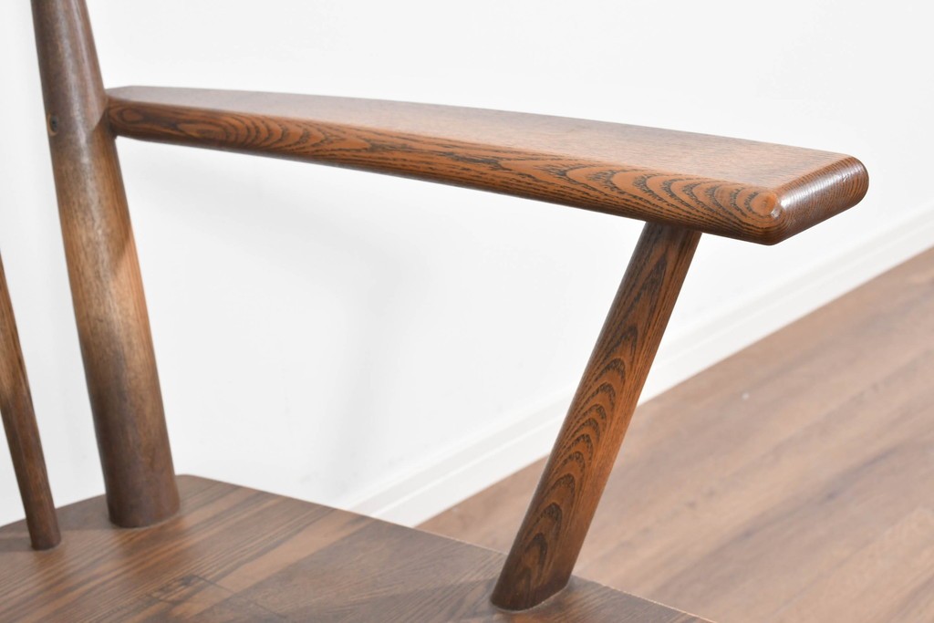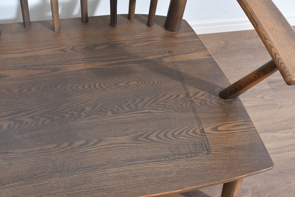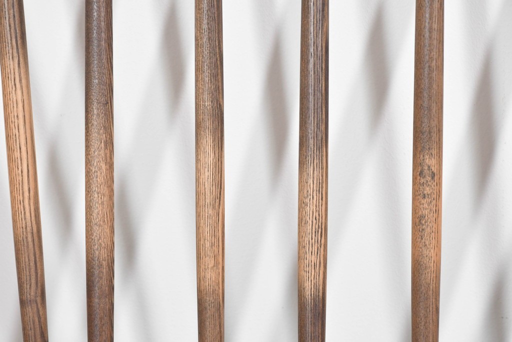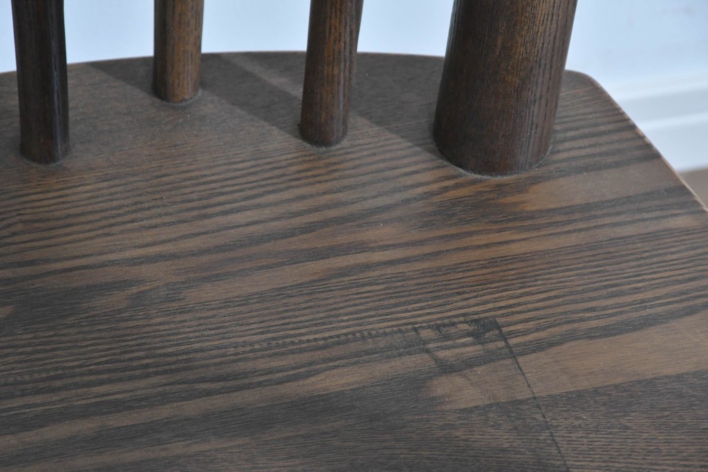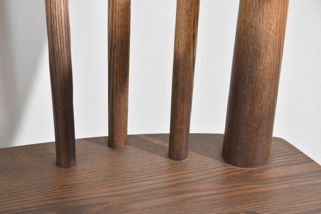 背もたれのスポークがすっきりと並ぶデザインで、木肌の表情が美しく映えます。