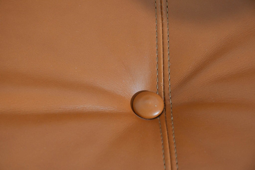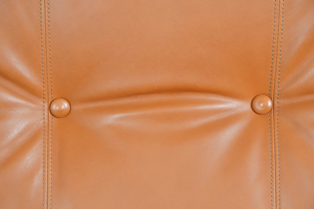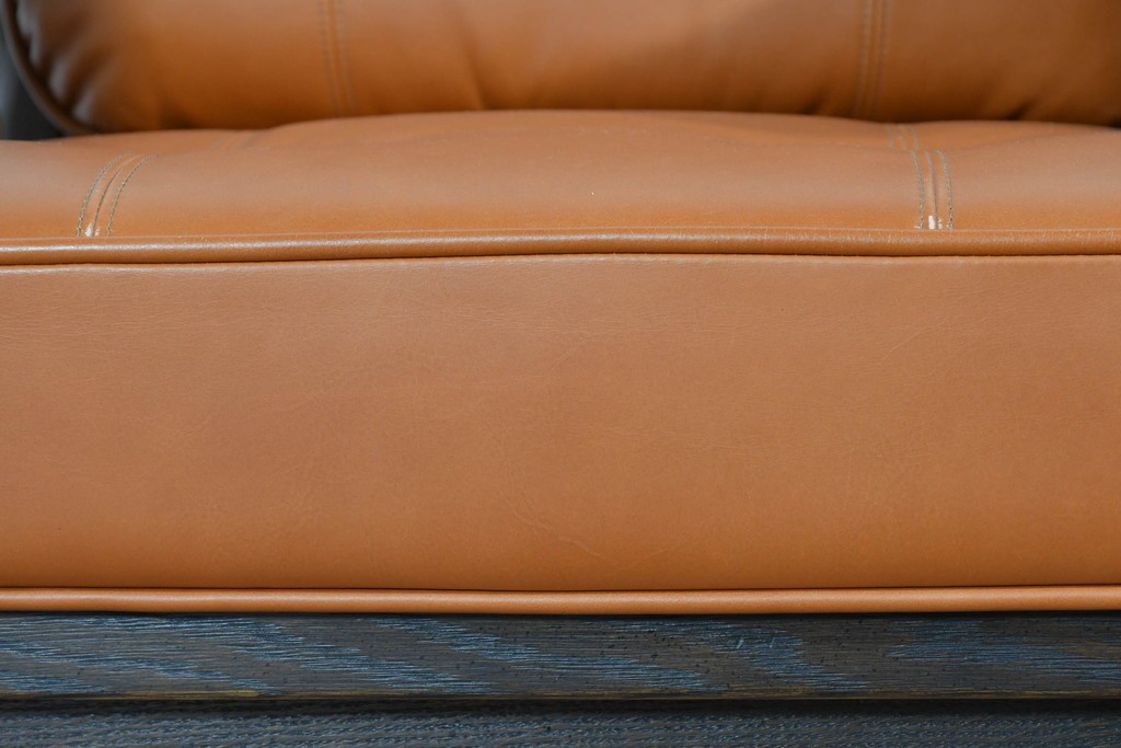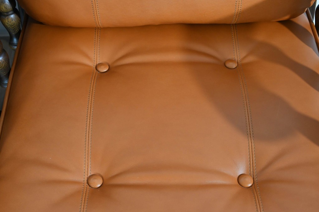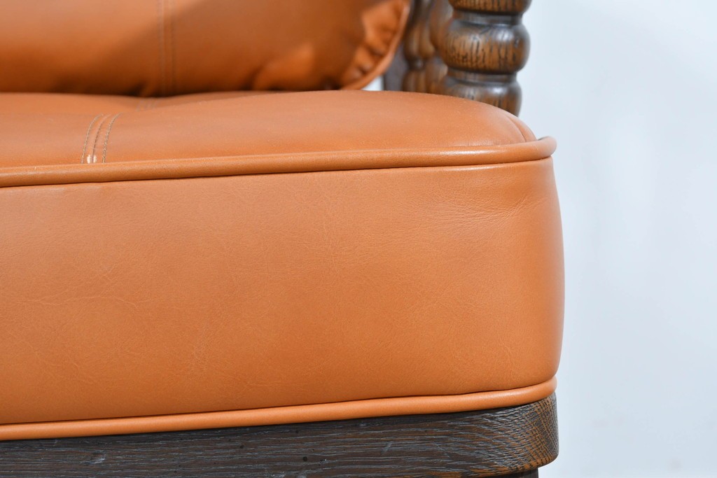 フレームには上質な無垢材が贅沢に使われ、アームや脚部のろくろ脚は丁寧な手仕事の証。手で触れるとその滑らかさと密度の高さに驚かされます。張りのある本革クッションは型崩れしにくく、しっとりとした肌触りで座り心地も抜群。背面の籐張りパネルが軽やかさを加え、どの角度から見ても美しいソファに仕上がっています。