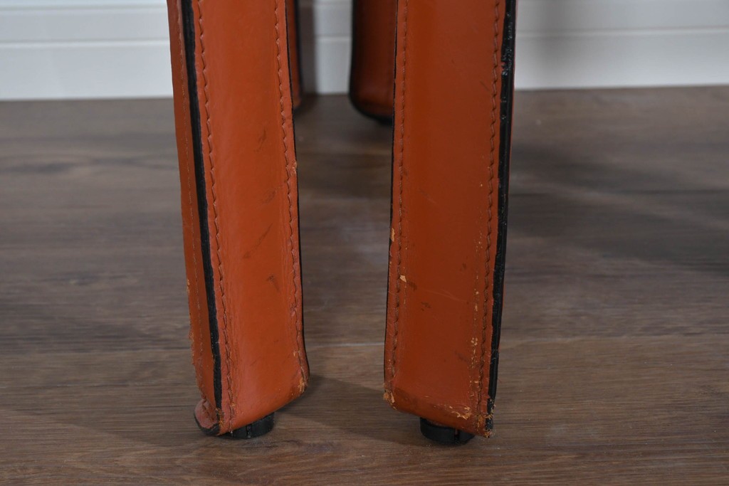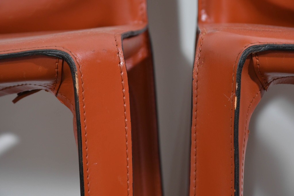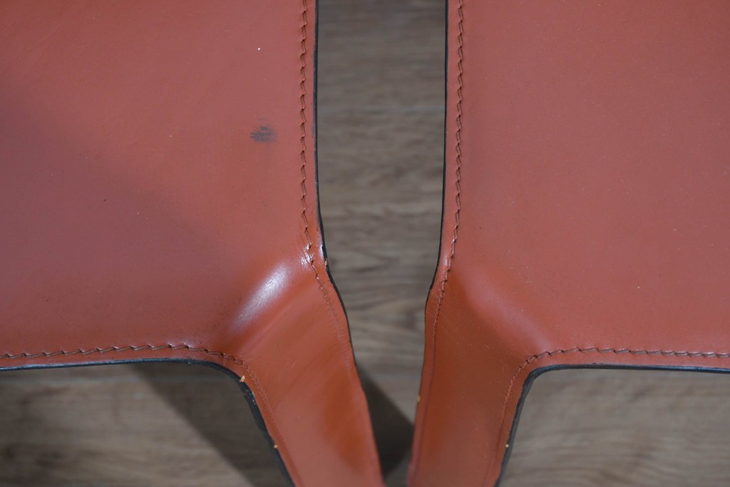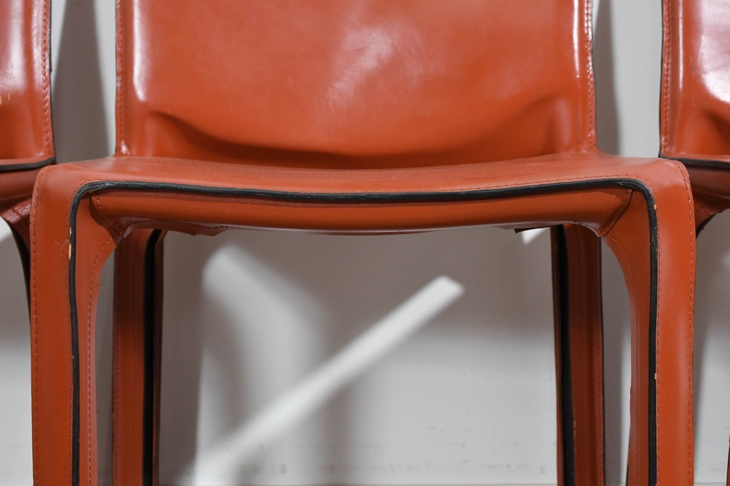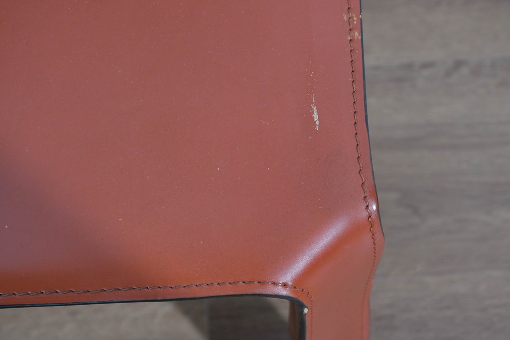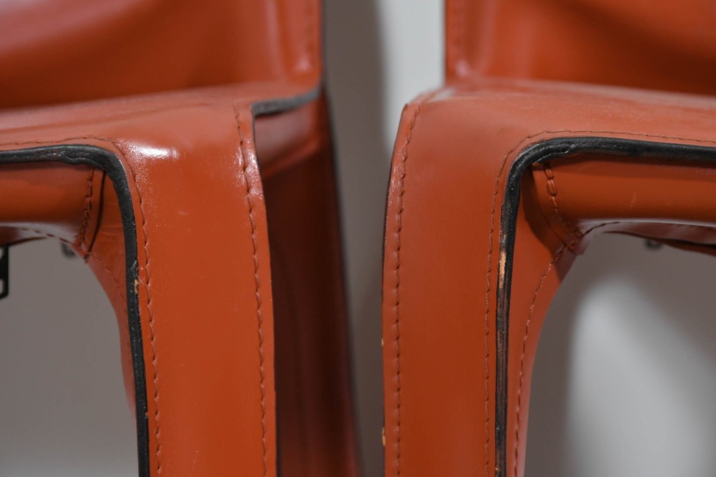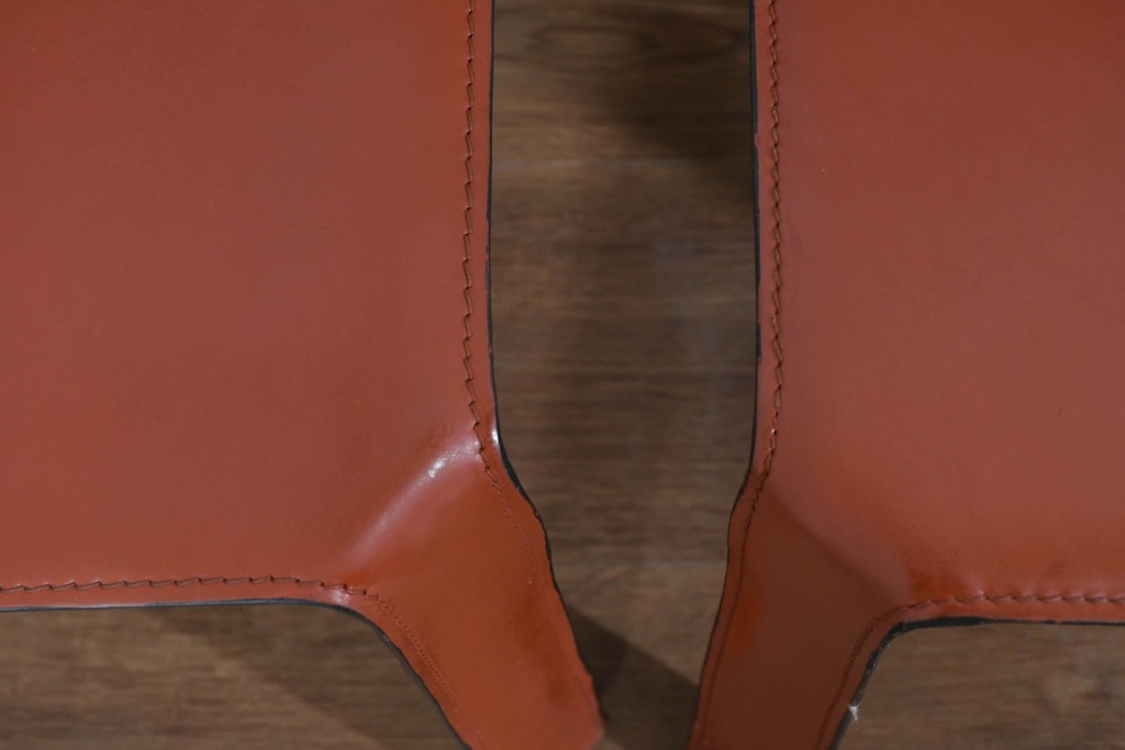 CABの魅力はなんといっても、上質な厚革をフレームにしっかりと張り込み、縫製まで丁寧に仕上げた本格仕様。画像からも分かるように、革の質感・ステッチライン・経年の味わいが非常に美しく、使い込むほどに風合いが深まります。脚部までフルレザーで覆われた彫刻的なフォルムは、唯一無二の存在感を放ちます。