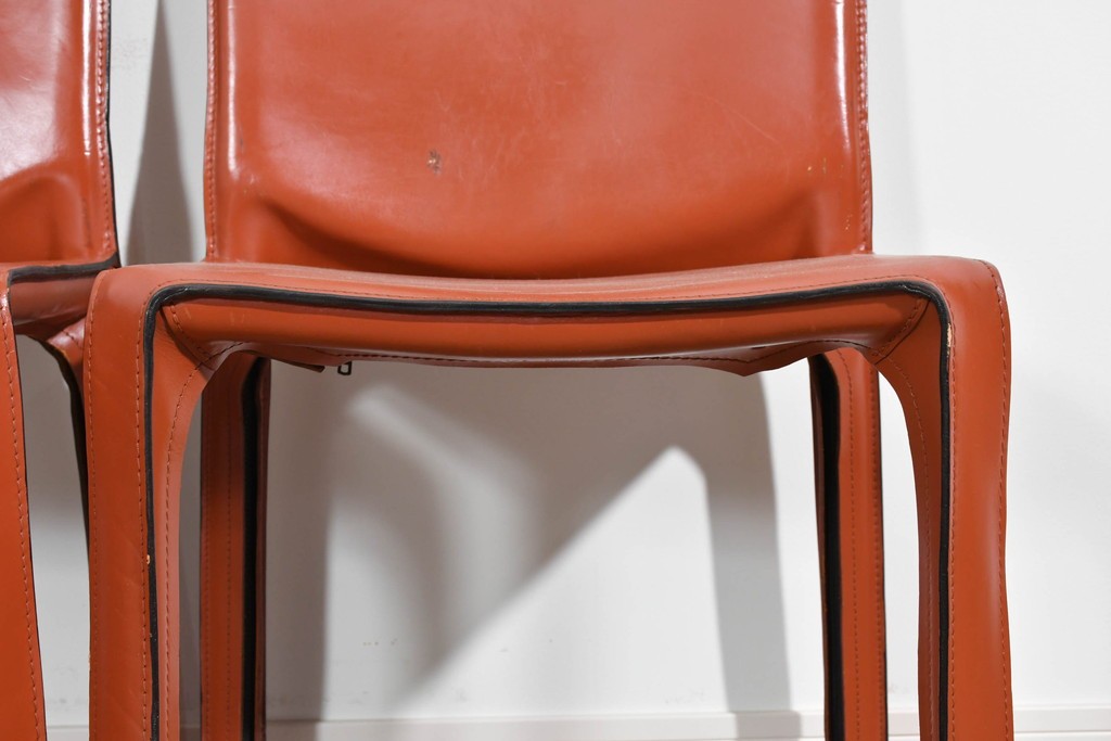 イタリアの名門 Cassina(カッシーナ)を代表する名作チェア「CAB 412」。MARIO BELLINI(マリオ・ベリーニ)によるデザインは、40年以上にわたり世界中で愛され続ける逸品です。フレームに革を“着せる”という革新的な構造により、まるで上質な革製品のような佇まいを実現し、ダイニング空間を一段上の雰囲気へ引き上げます。