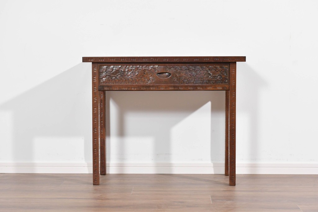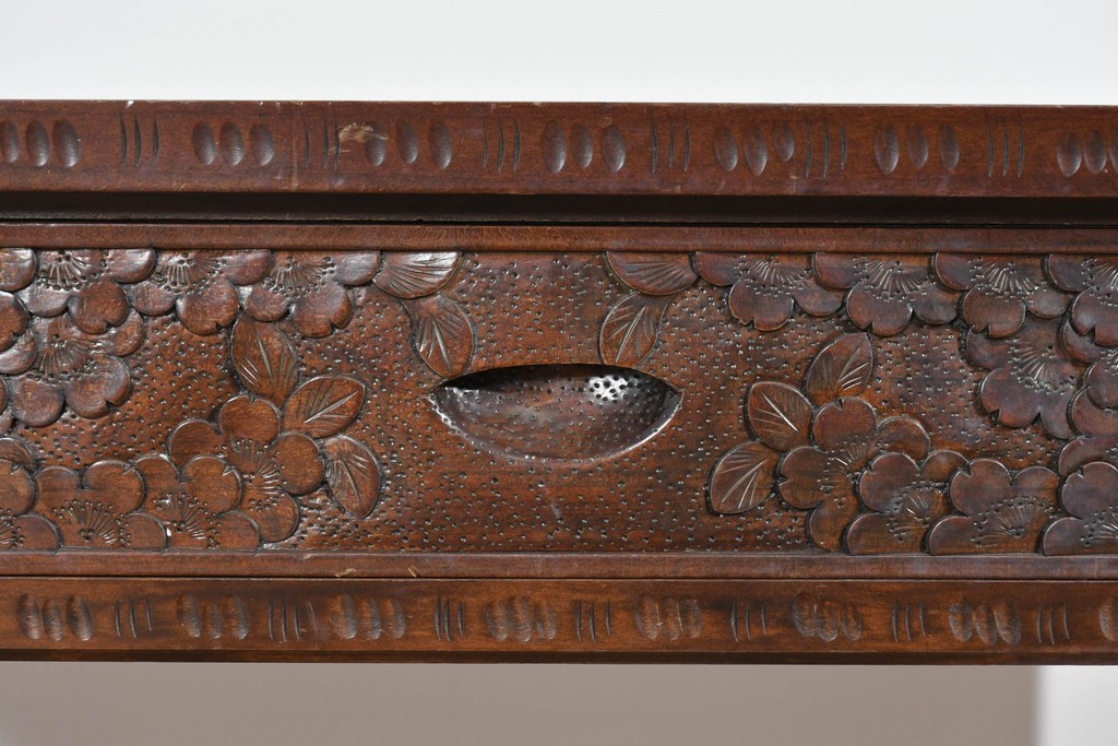 軽井沢彫りならではの繊細な花の彫刻が魅力のコンソールです。