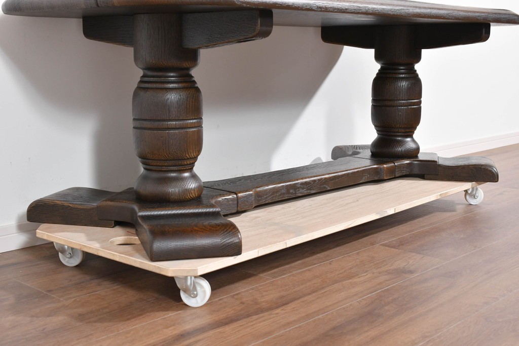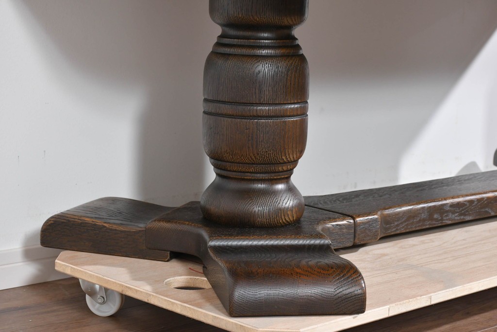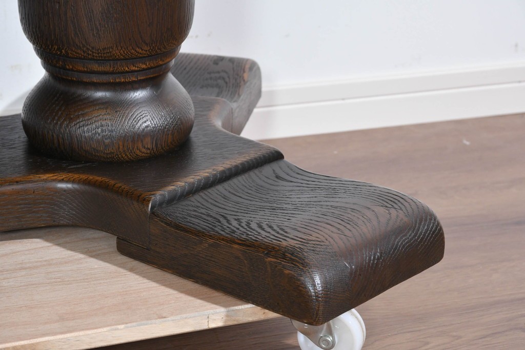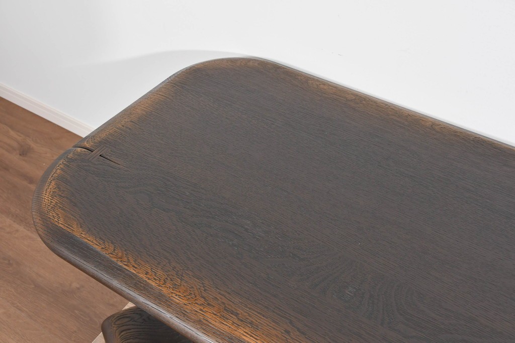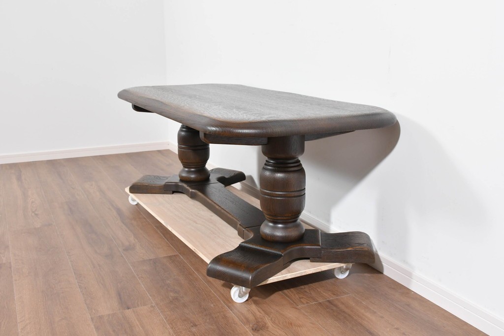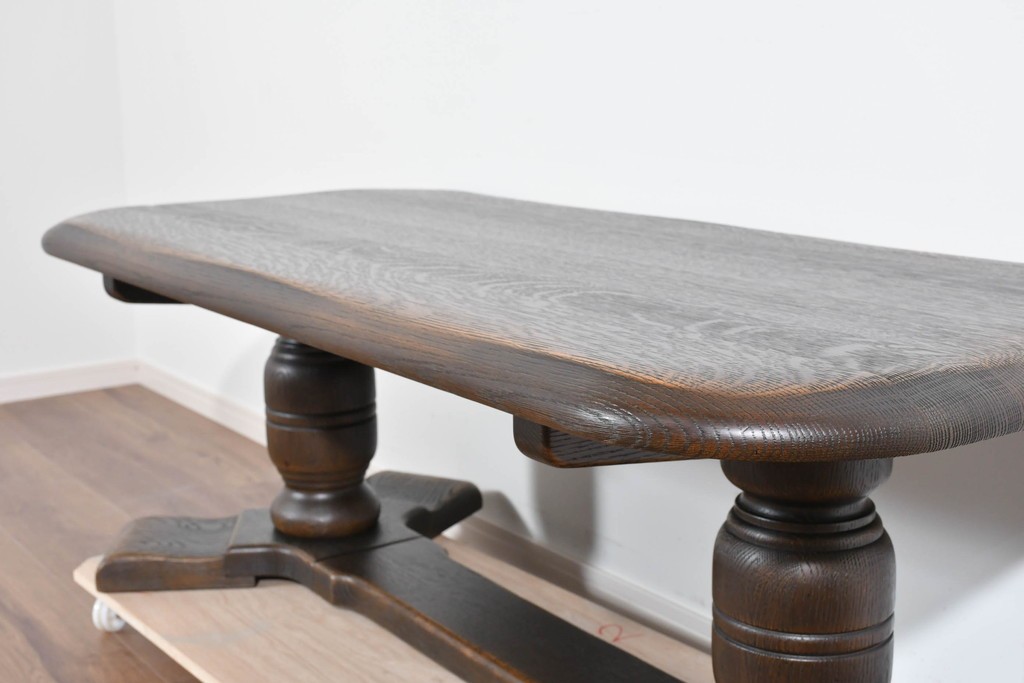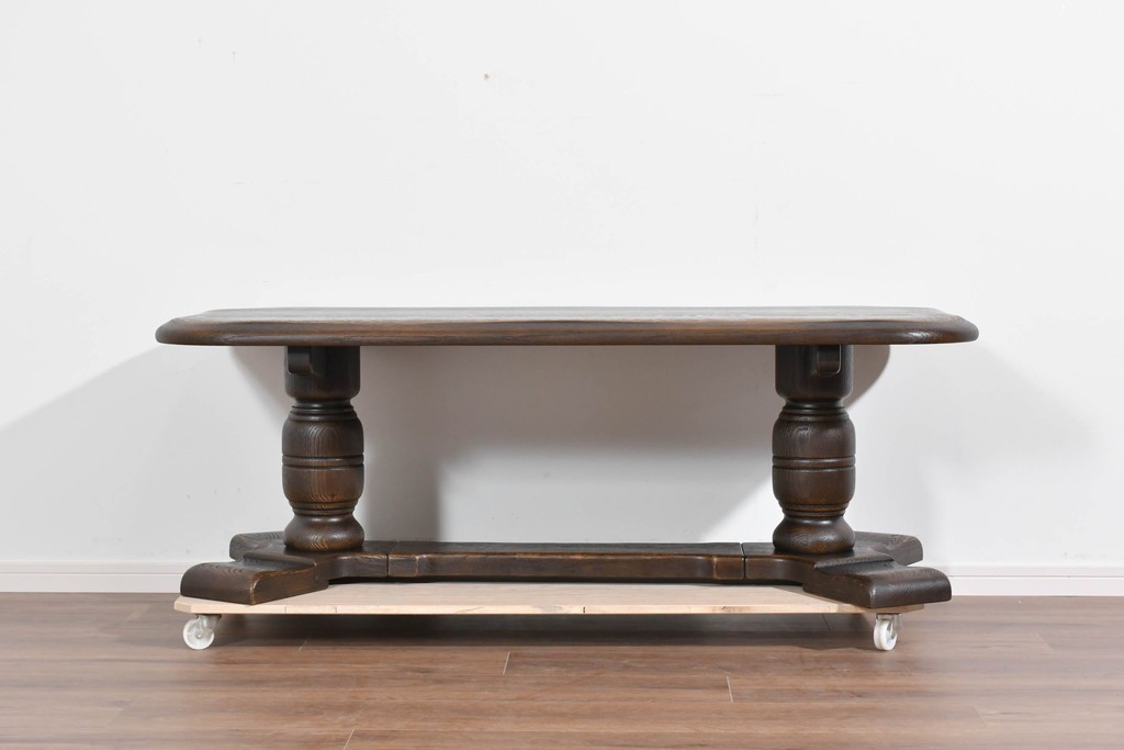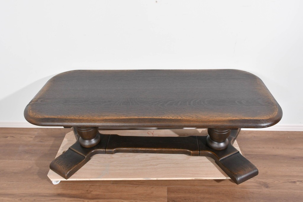 存在感ある太い挽物脚が特徴で、手仕事による丸みや陰影が美しく、クラシックスタイルの魅力がしっかりと表現されています。低めの設計ながら安定感があり、リビングの中心に落ち着いた雰囲気を添えてくれます。