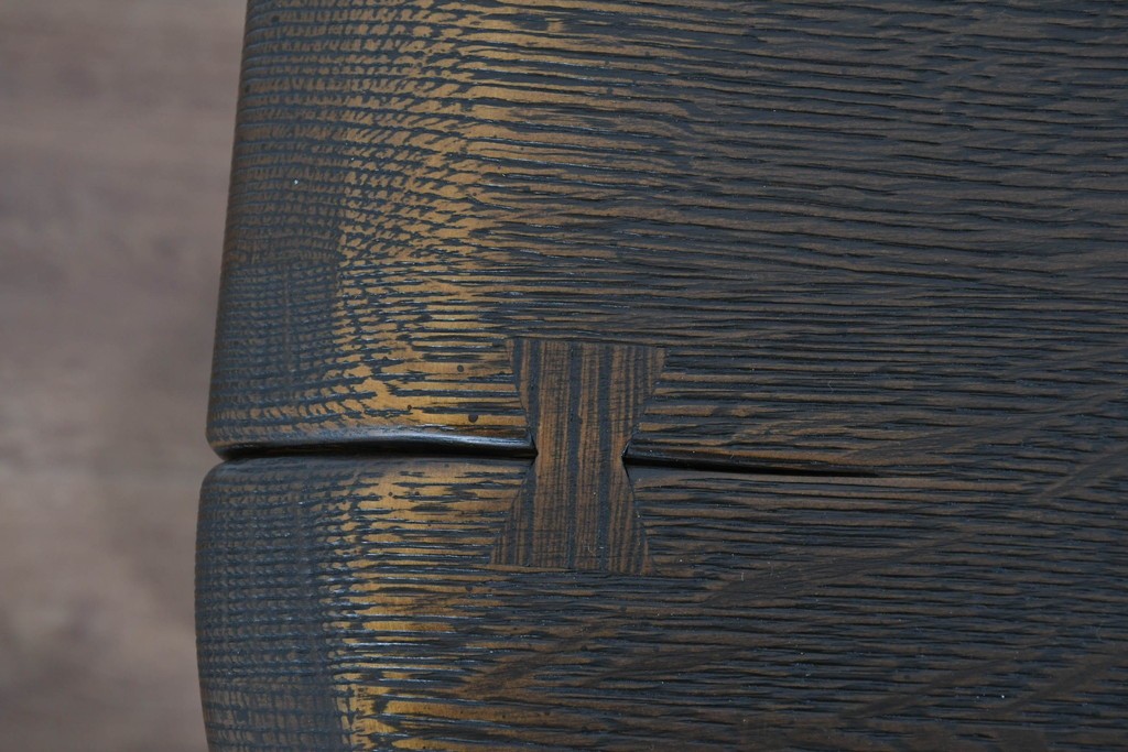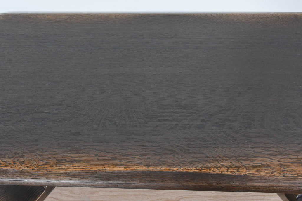 ナラ材ならではの豊かな木目が、天板から脚部まで一体感をもって広がり、プロヴィンシャルシリーズらしい上品な存在感を引き立てます。木肌の凹凸を活かした仕上げにより、自然素材の奥行きある風合いが感じられます。