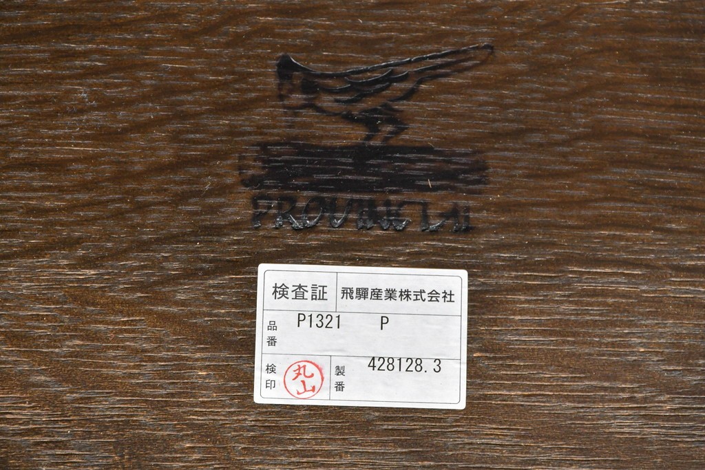 キツツキマークで知られる飛騨産業の家具は、木工技術の高さと堅牢なつくりが魅力です。本品はその中でも人気のプロヴィンシャルシリーズで、手仕事の温もりと重厚感のバランスがとれた仕上がりです。