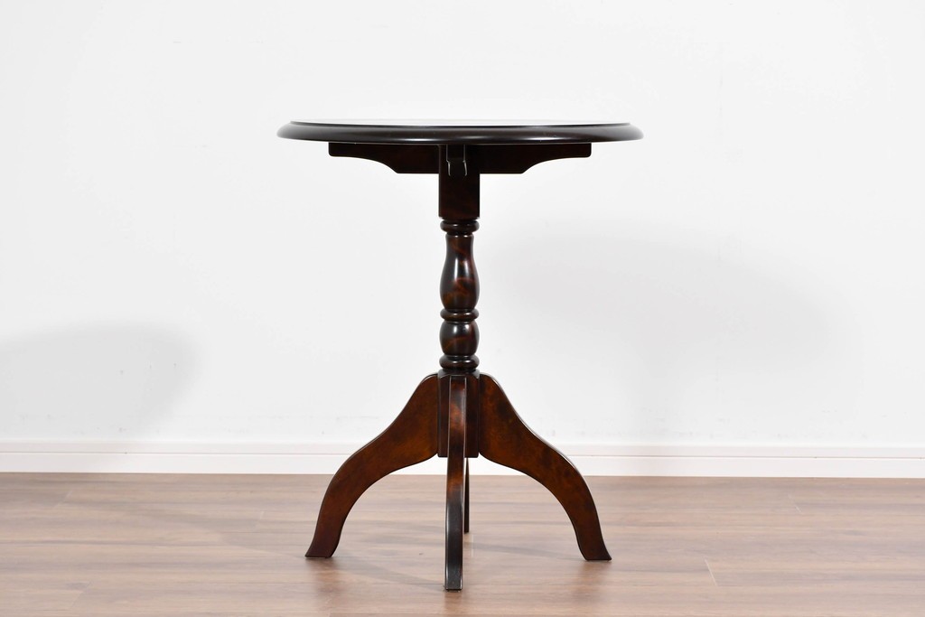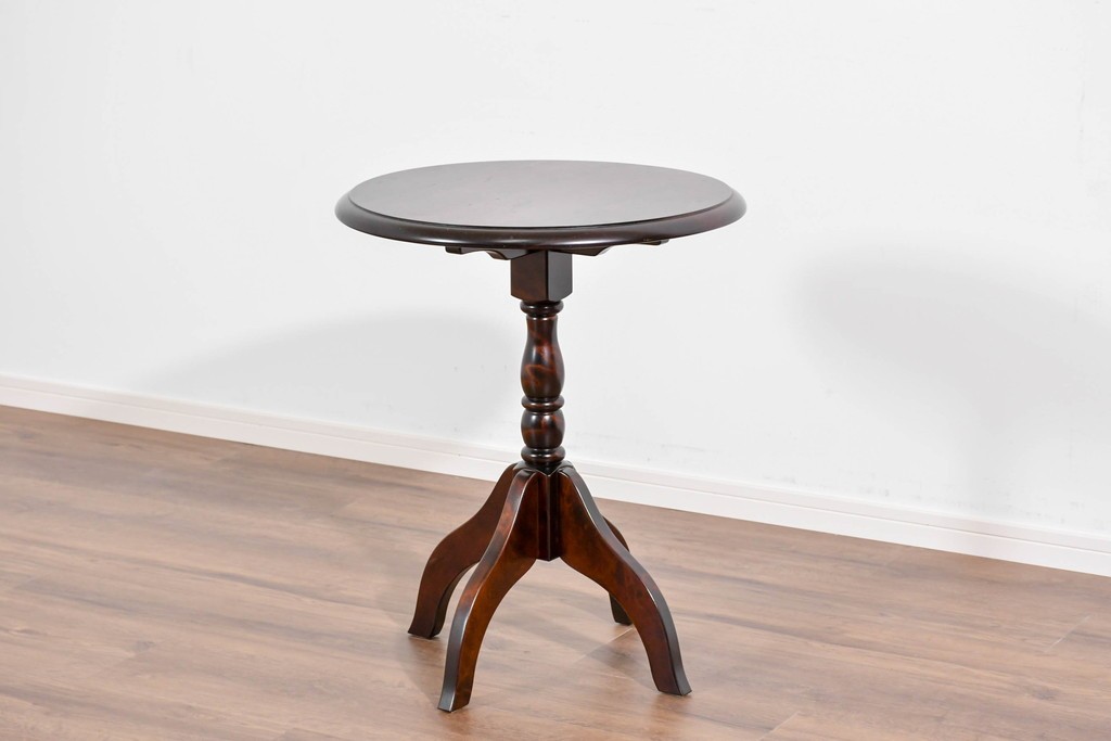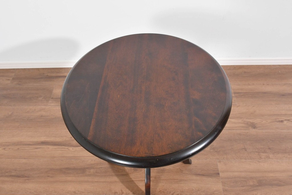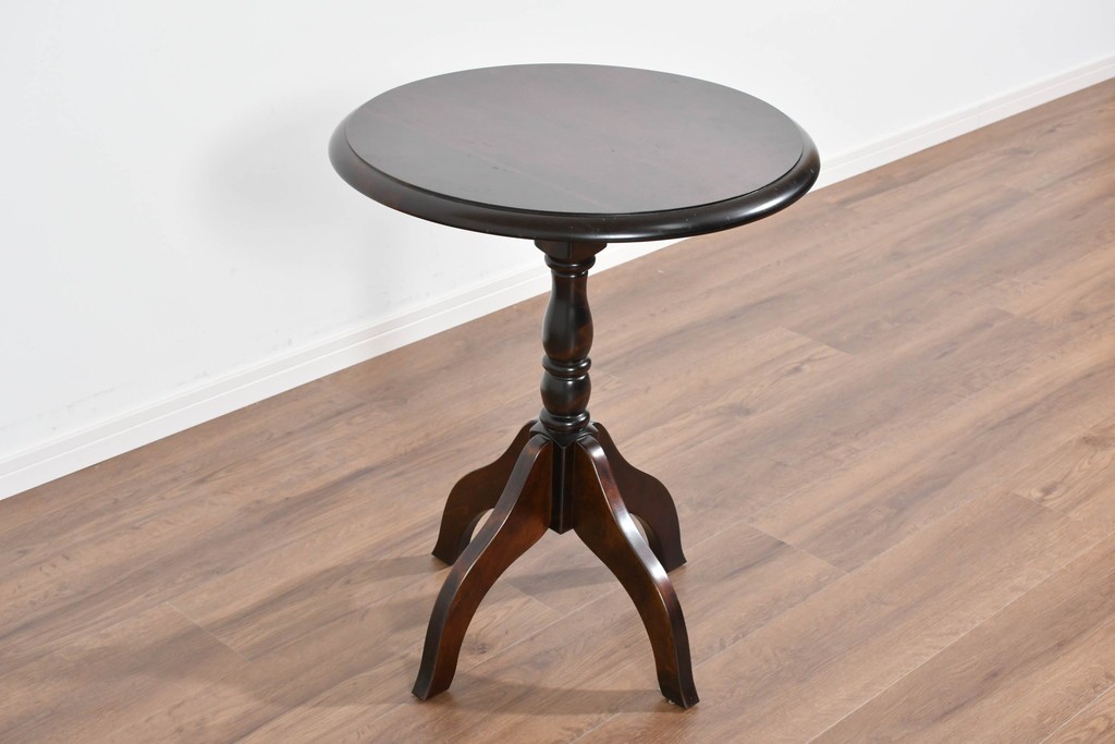 落ち着いた色味と存在感のある挽物脚が魅力の北海道民芸家具のサイドテーブルです。