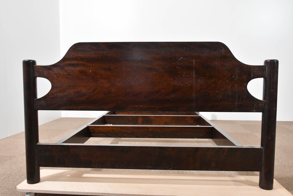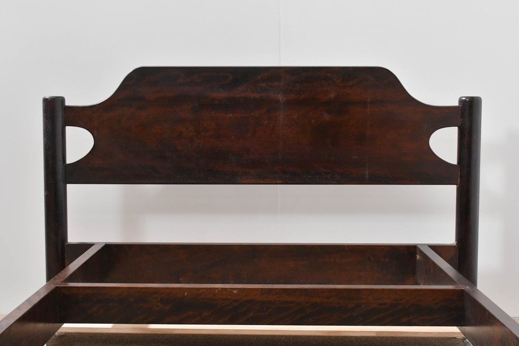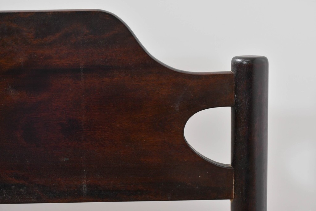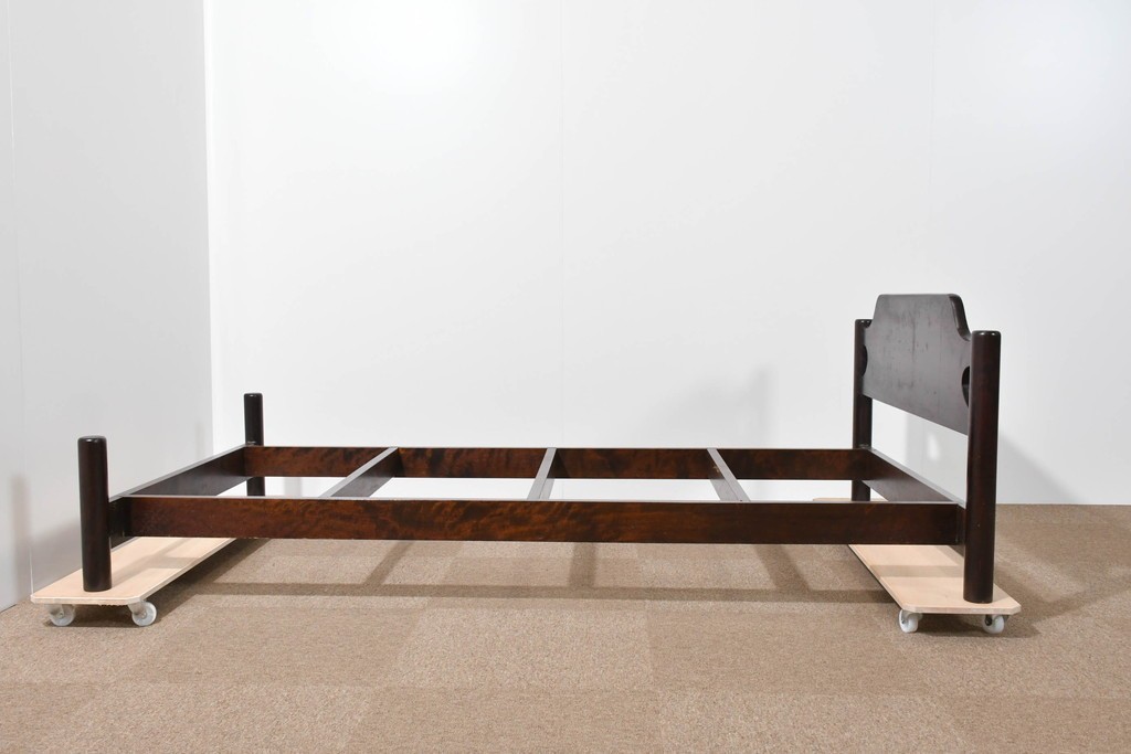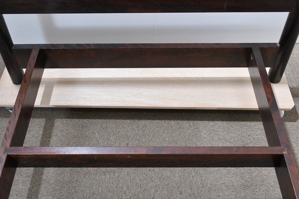 松本民芸家具らしい素朴で端正な意匠が魅力です。厚みのある無垢材を生かした伸びやかなラインや、ヘッドボードのやわらかな曲線が、民芸家具特有の落ち着いた雰囲気を演出します。職人の手仕事が感じられるつくりで、長く愛用したくなる存在感があります。