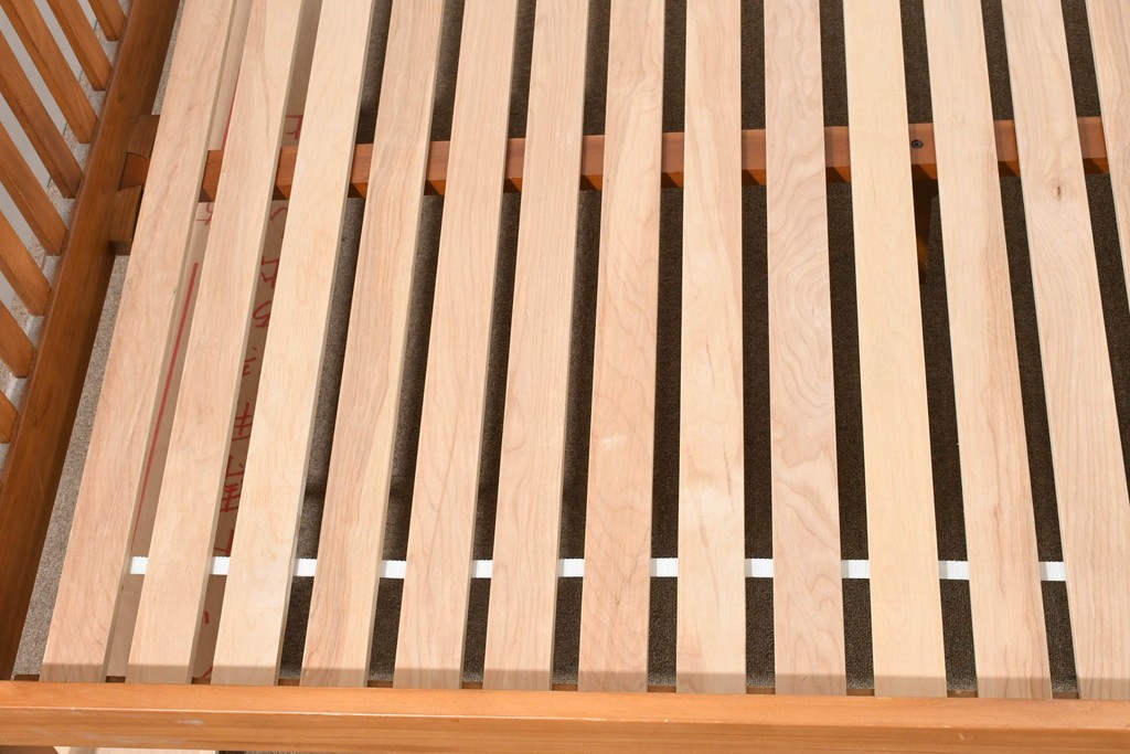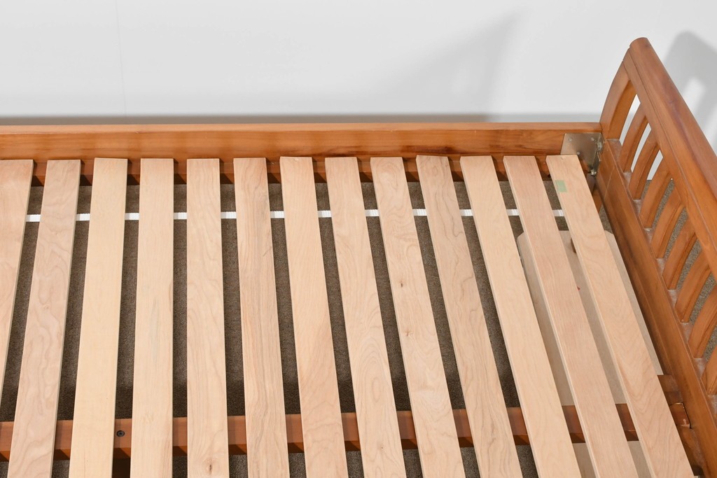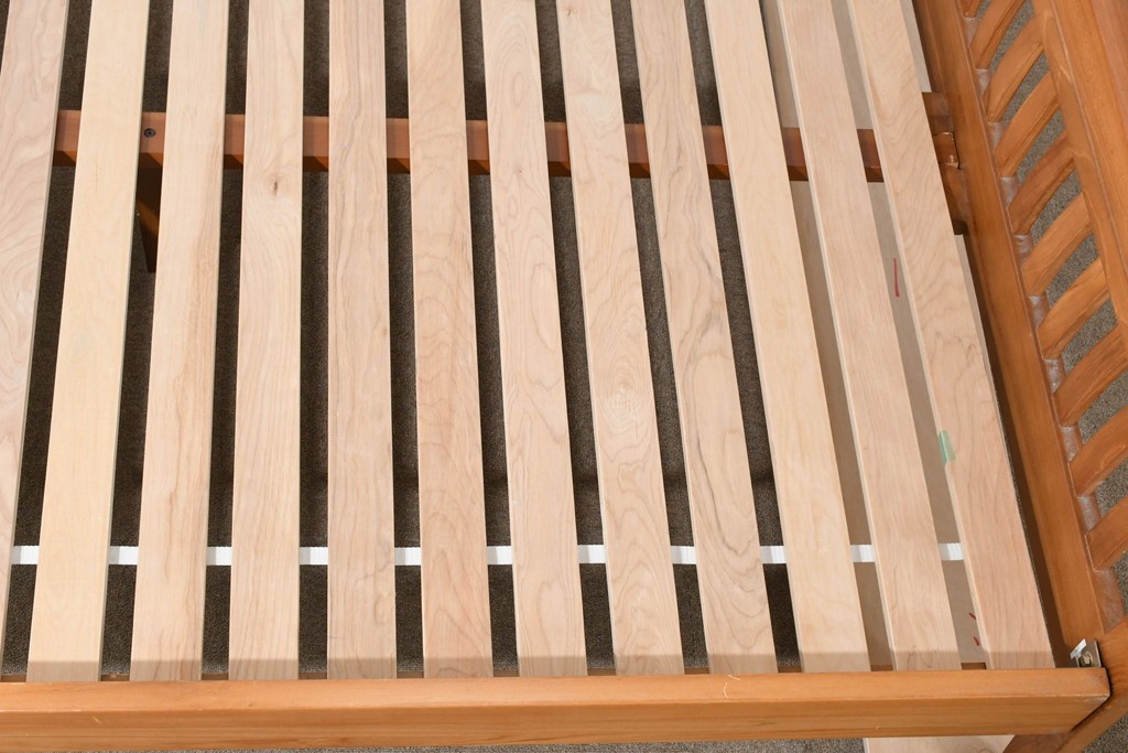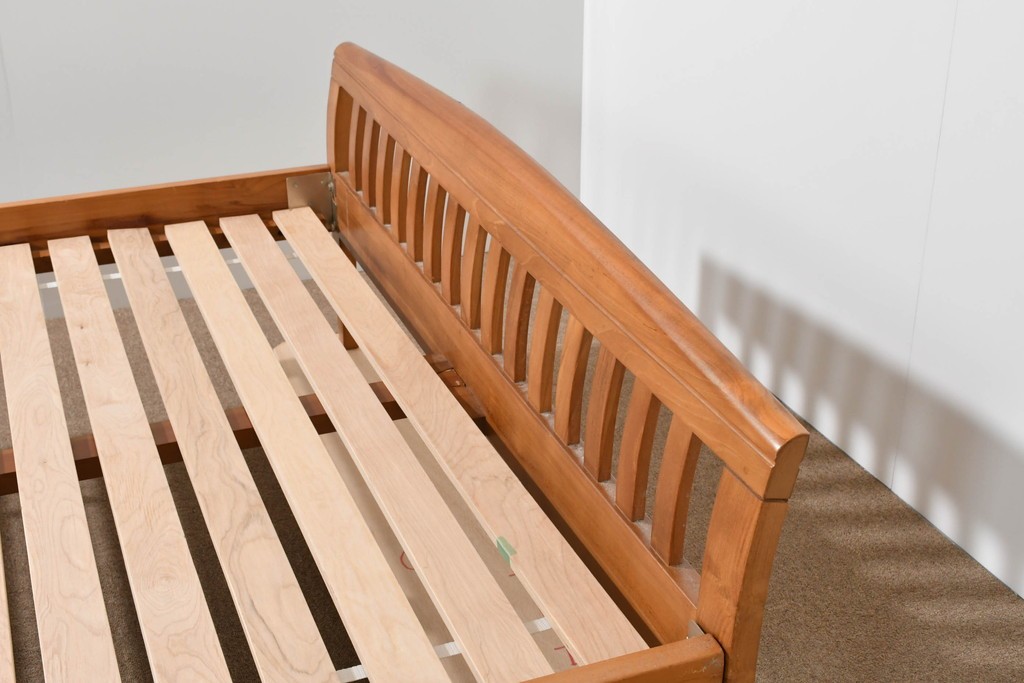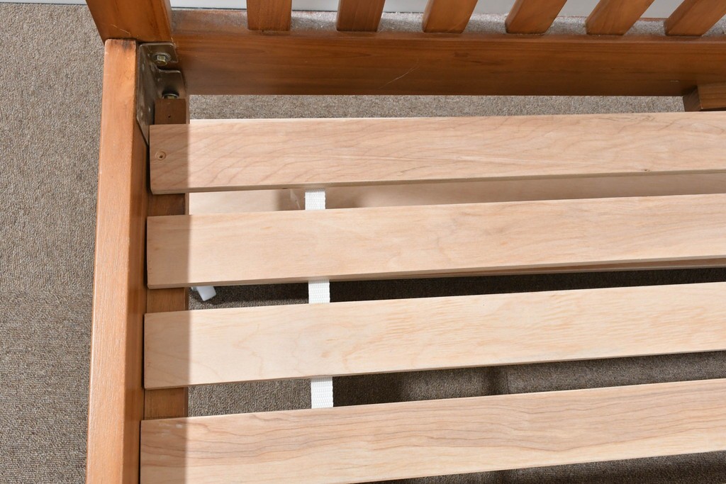ヘッドボードとフットボードの緩やかなカーブがやさしい印象を与え、天然木の温もりを寝室に取り入れられます。