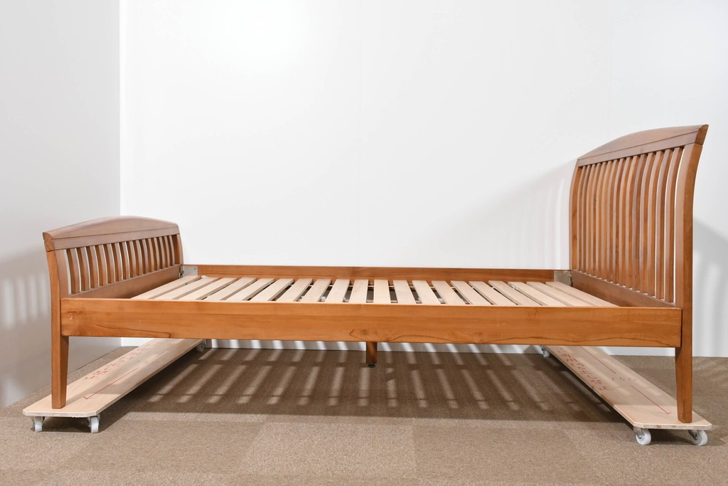 スキャンティークによるチーク無垢材のダブルサイズベッドフレームです。
