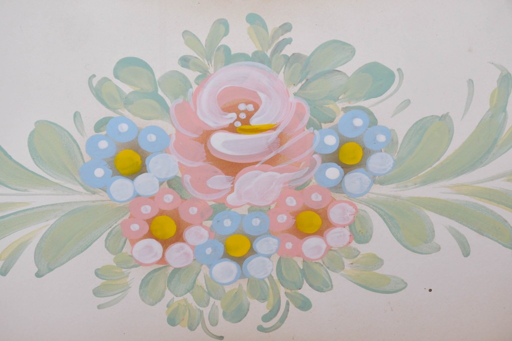 フットボード中央には、淡いパステル調で描かれた花の絵付けが施され、シリック家具特有の柔らかい世界観を楽しめます。
