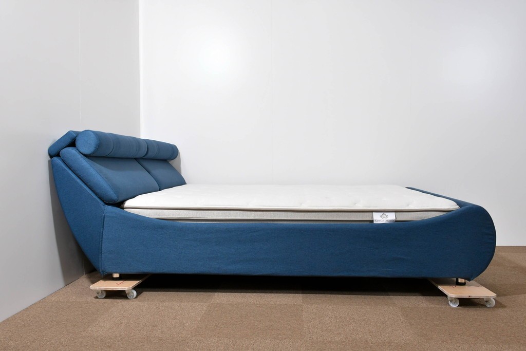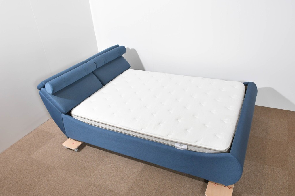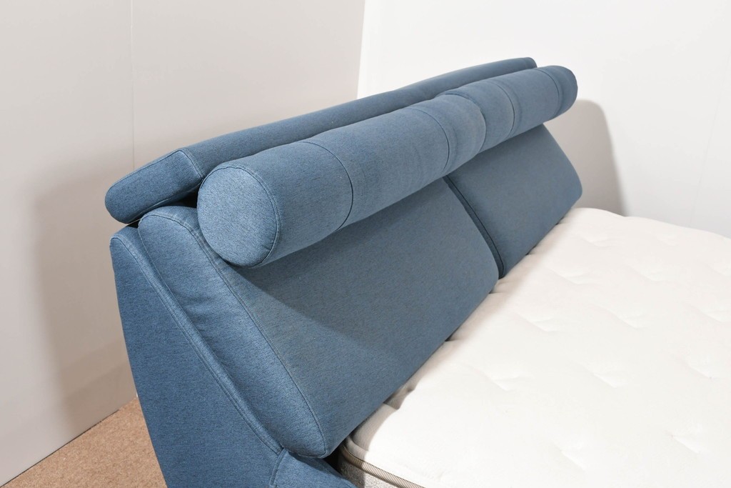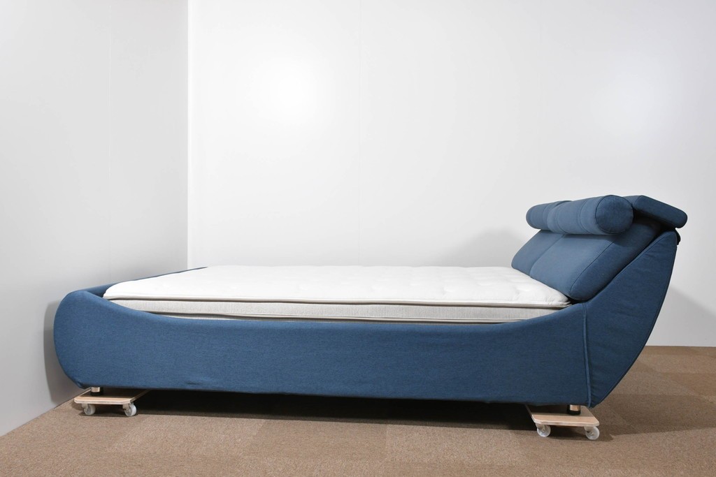 柔らかな曲線を取り入れたフレームデザインが印象的で、ファブリック張りならではの落ち着いた質感を楽しめます。