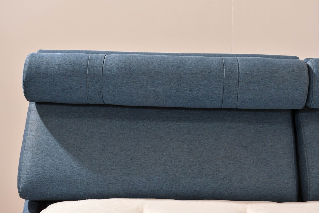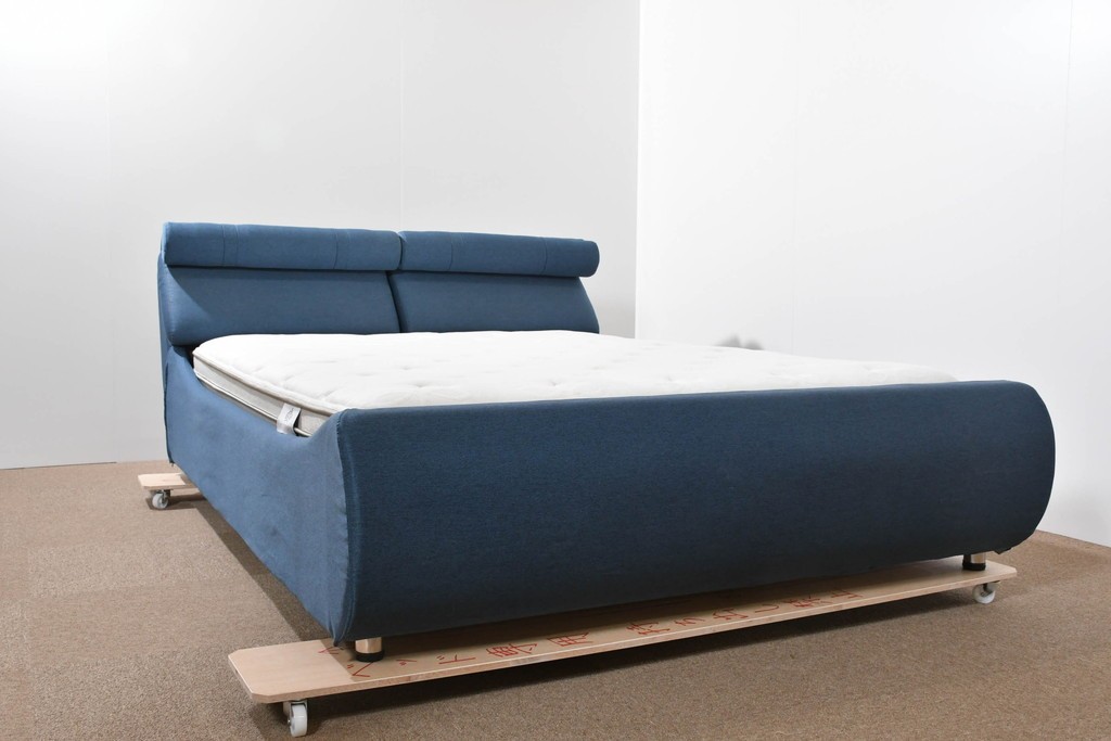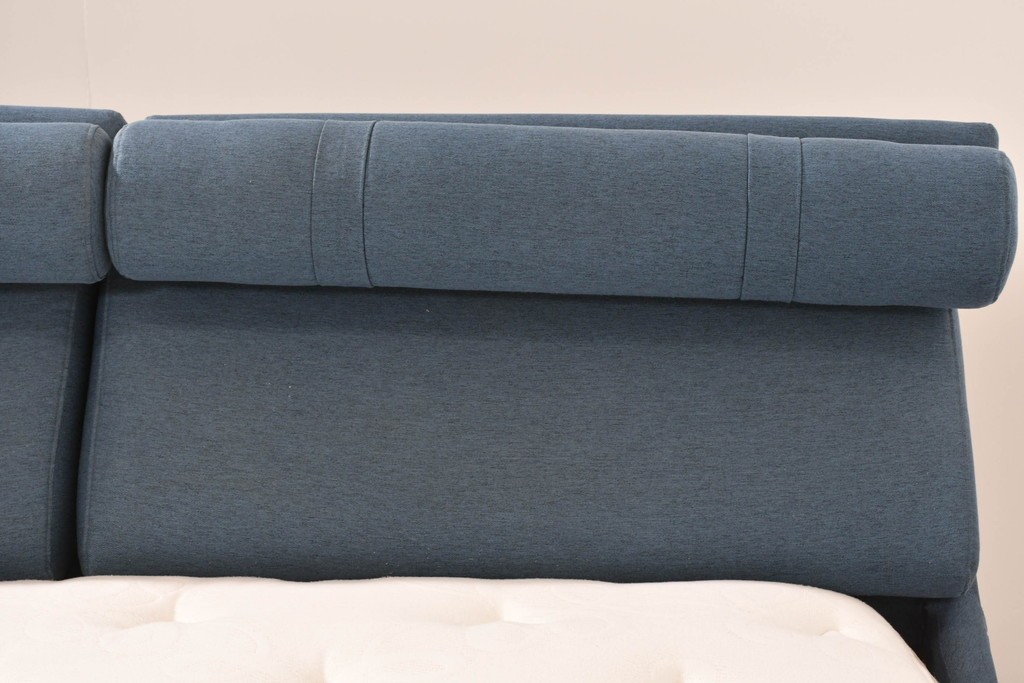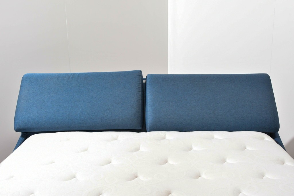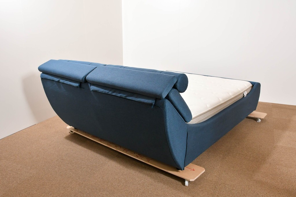 柔らかな曲線を取り入れたフレームデザインが印象的で、ファブリック張りならではの落ち着いた質感を楽しめます。