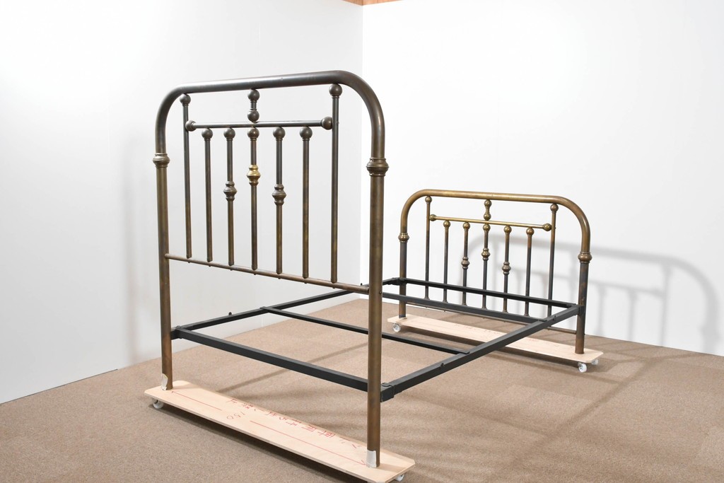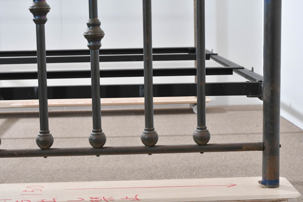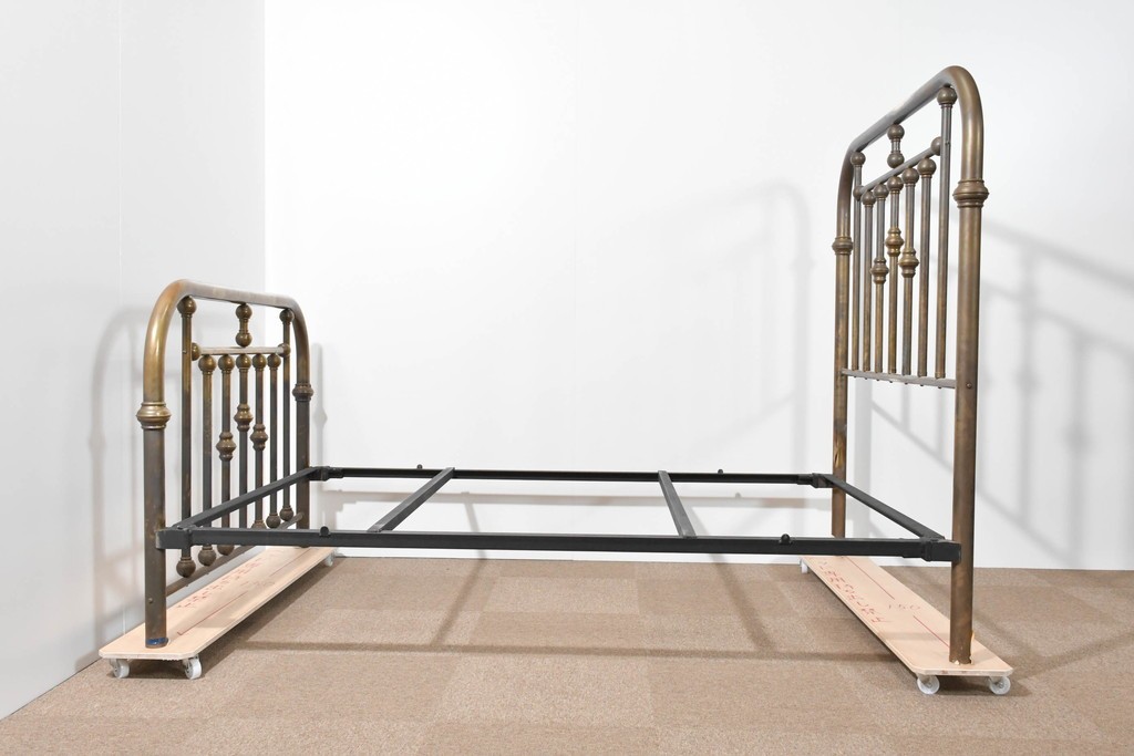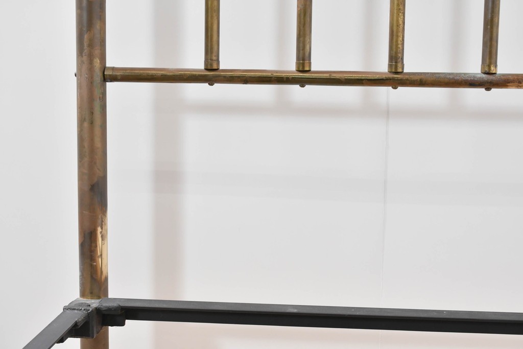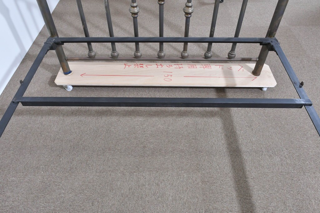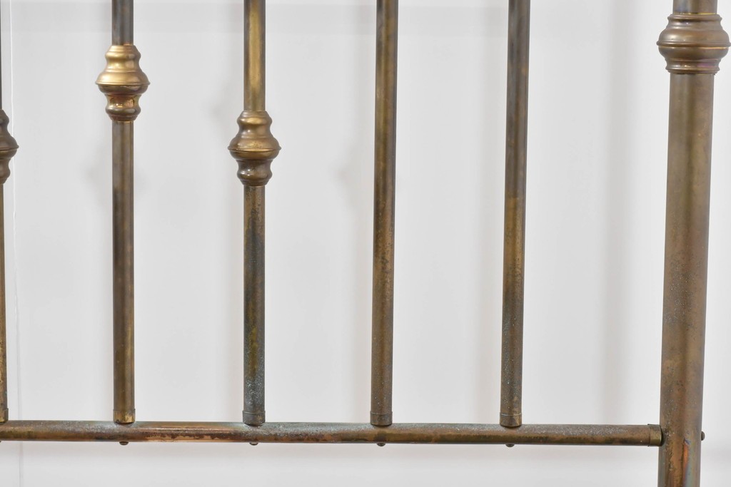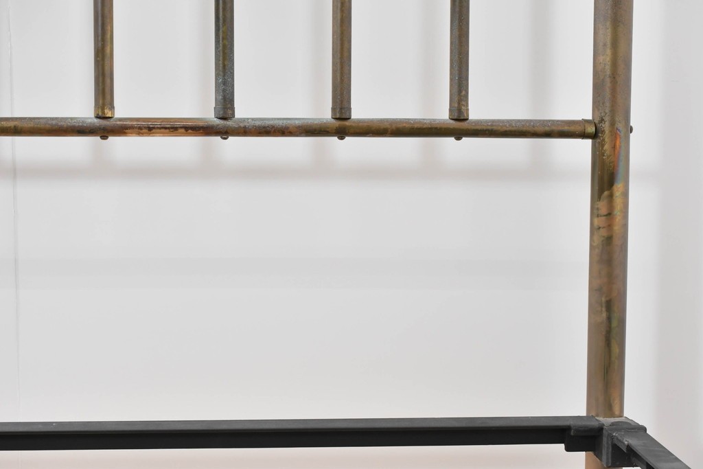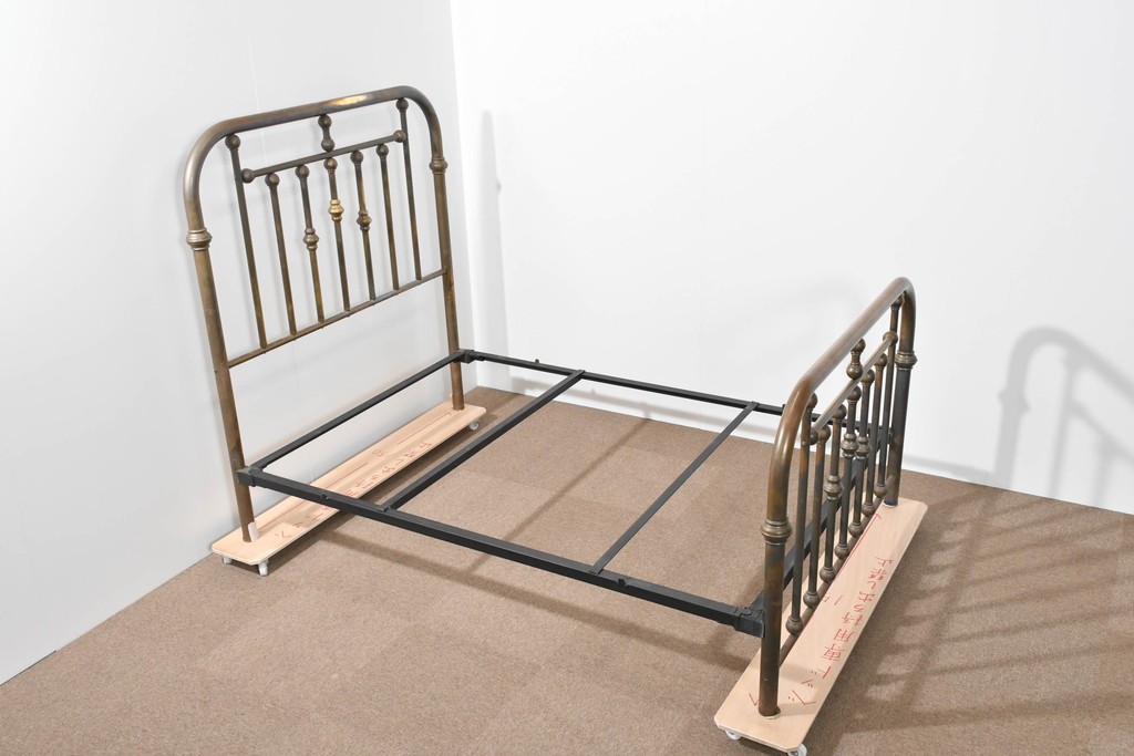 真鍮製の支柱としっかりとしたスチール製フレームの組み合わせにより、安心感のある構造が特徴です。素材の重みと剛性がしっかりと安定性を確保し、長く愛用できるベッドフレームとしての魅力を備えています。装飾性だけでなく実用性にも優れた、質の高いヴィンテージ家具です。