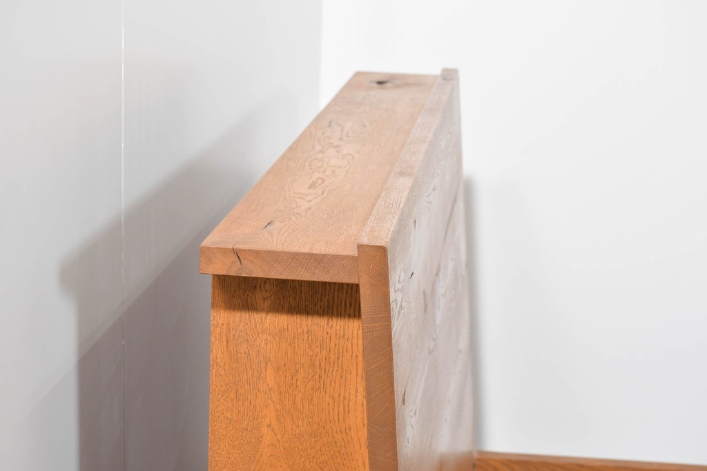 ヘッドボードの上部は奥行きがしっかりとられており、小物を置ける棚として活躍します。目覚まし時計や照明、読みかけの本、植物などを置くことができ、ベッド周りをすっきり整えながら、日々の使い勝手も高めてくれます。シンプルな造形の中に、TRUCK FURNITUREらしい実用性へのこだわりが感じられます。