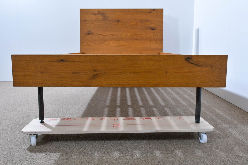 無垢のナラ材を用いたベッドフレームは、木目の力強さと温かみが印象的です。ヘッドボードからフレームにかけて、ナラ材ならではの素朴で心地よい表情が一体感を生み、寝室に落ち着いた雰囲気をもたらします。自然素材の魅力をそのまま生かした、長く親しみやすい佇まいです。