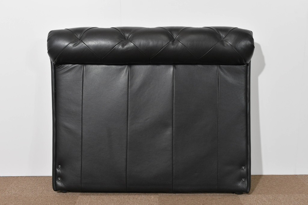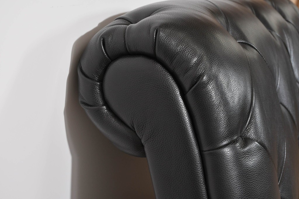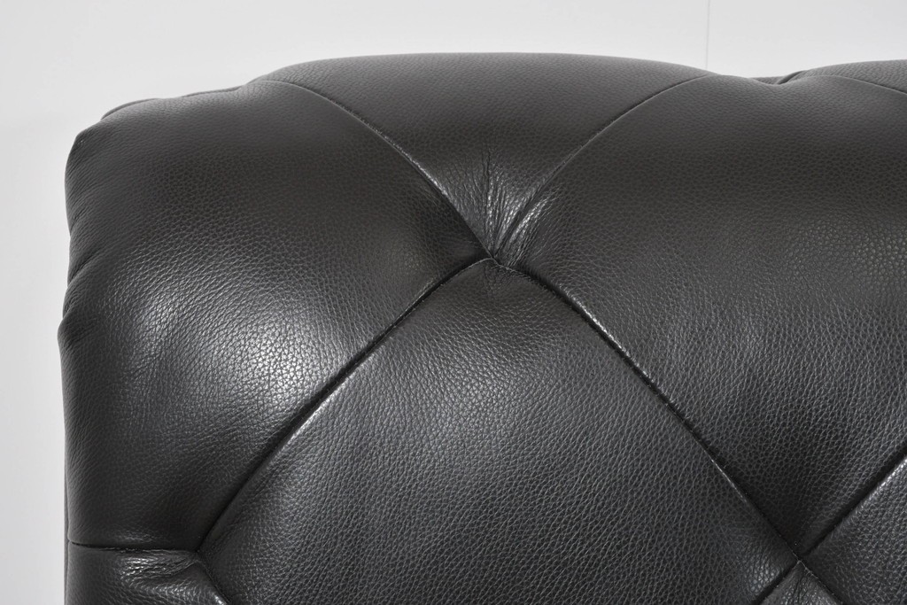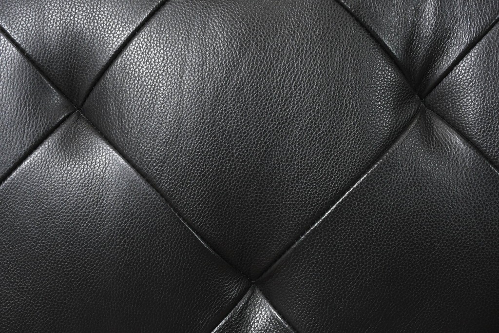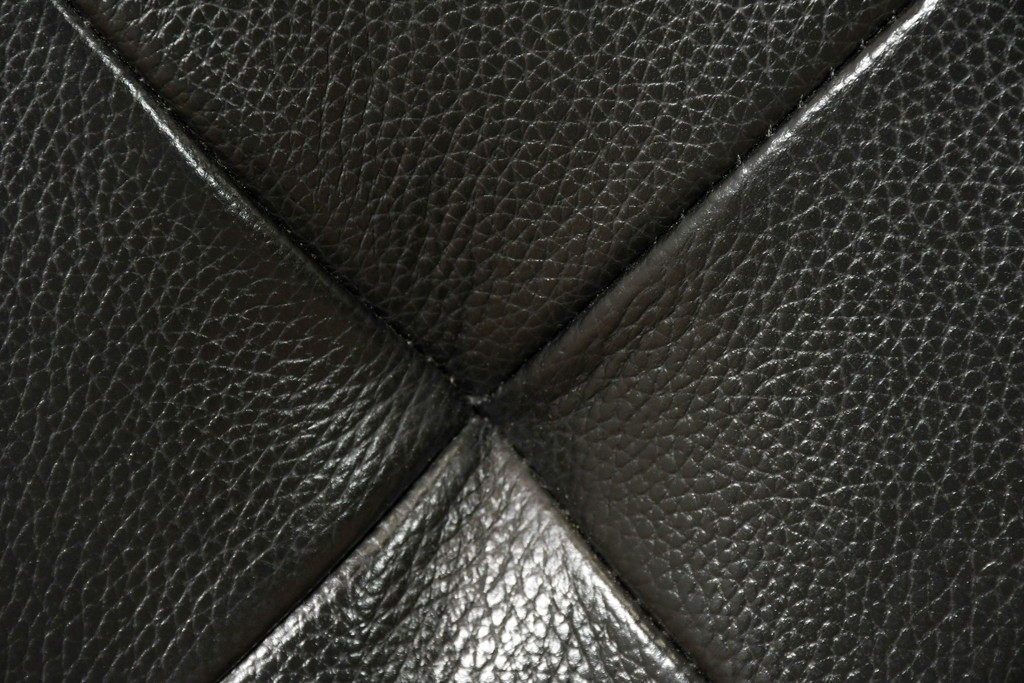 しっとりとした質感の本革にボタン留めの装飾が施され、上品で落ち着いた雰囲気を感じさせます。