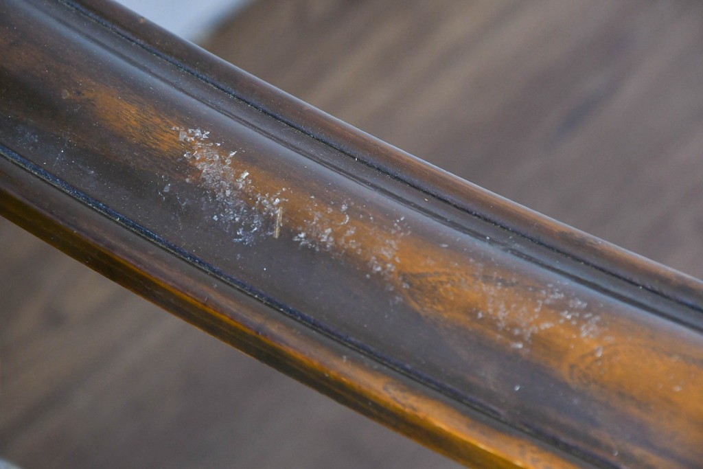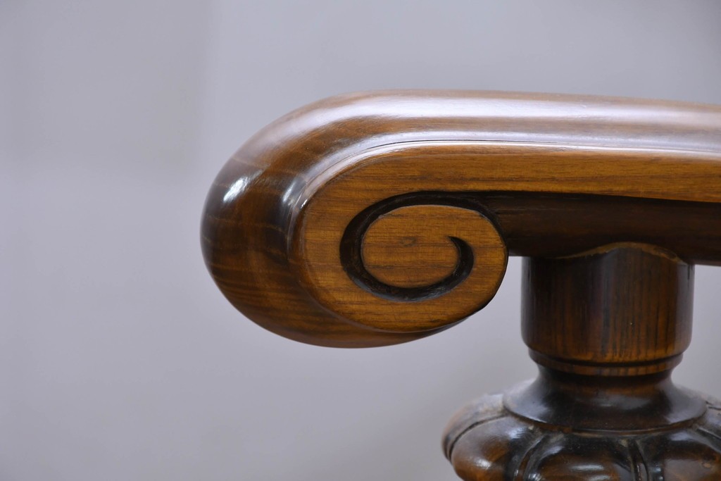 木部の曲線や装飾のつくりが丁寧で、伝統的な洋家具らしい上品な雰囲気を楽しめる一台です。