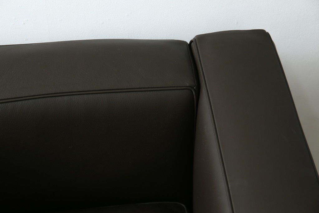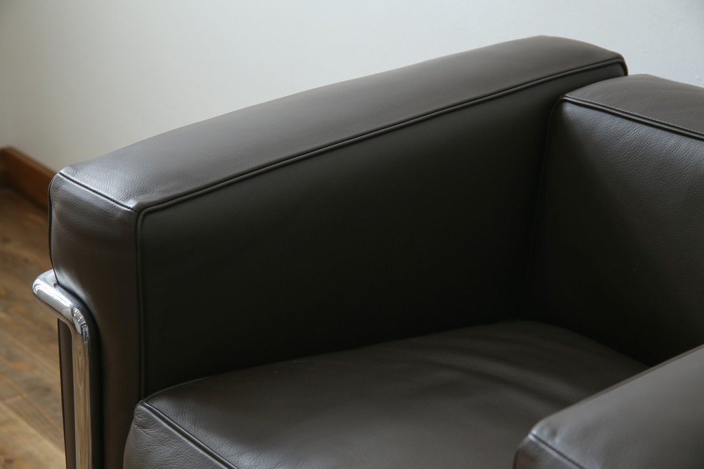 こちらはCassina製のライセンス品で、クッション部のレザーの張りや縫製の整い方など、上質感のある仕立てが魅力です。ふっくらとしたクッションが身体を心地よく受け止め、長く愛用できるソファとしての確かな安心感があります。