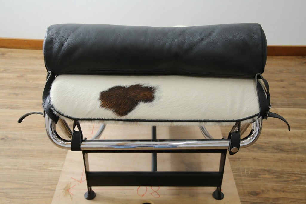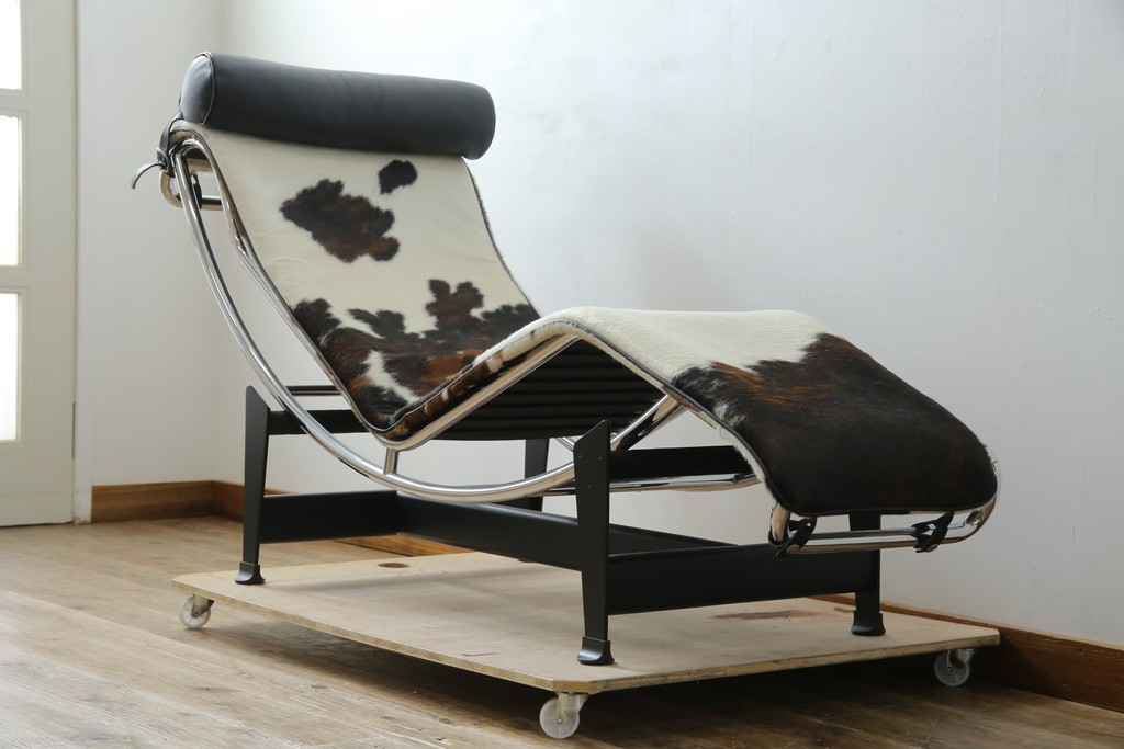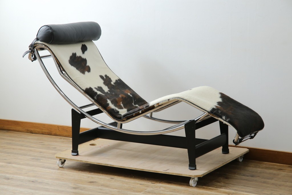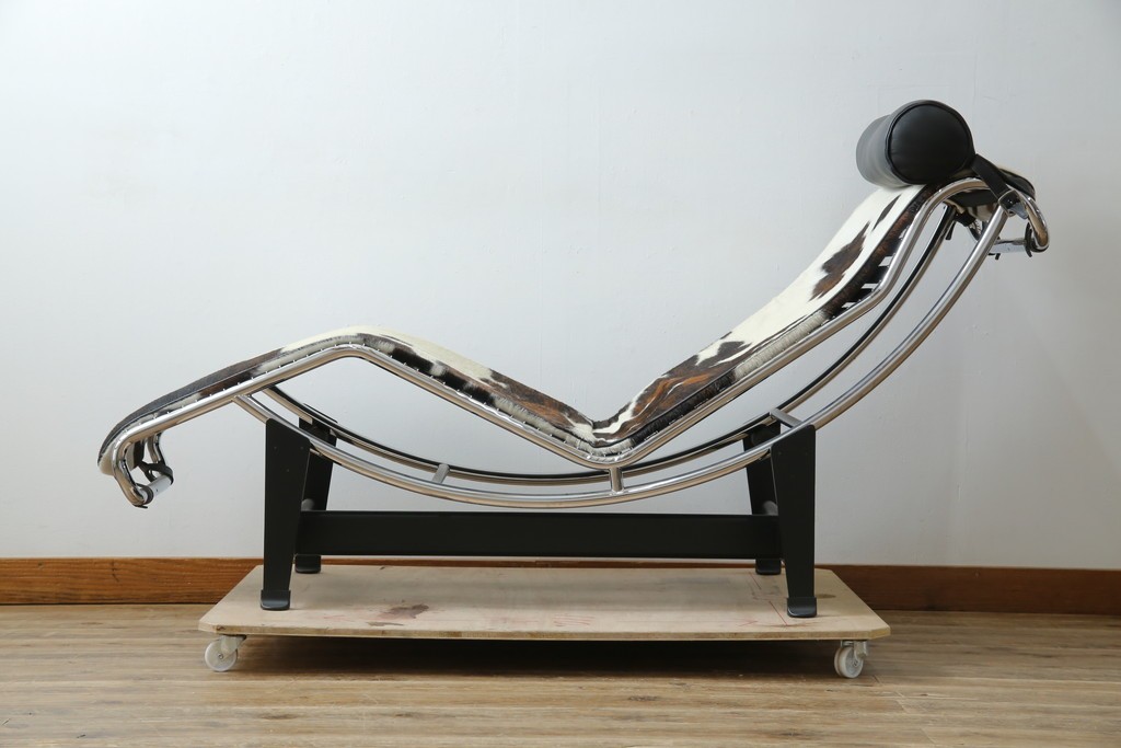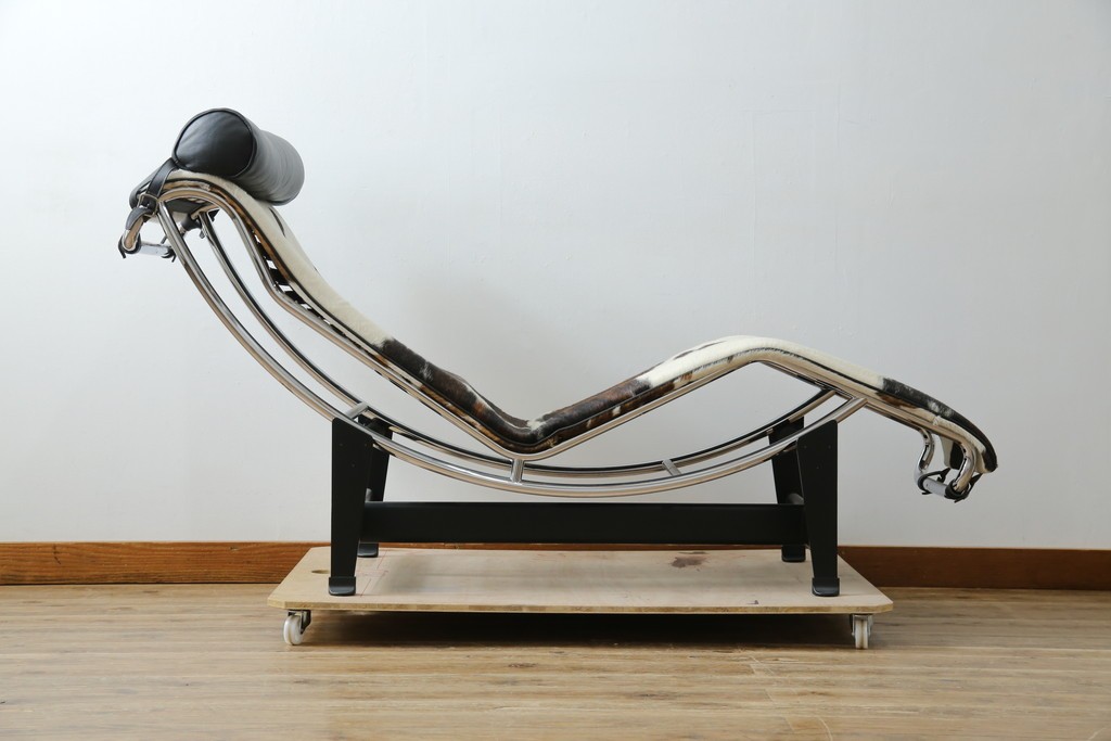 緩やかなカーブを描くフレームが特徴のLC4シェーズロングです。横たわった姿勢を自然に支える独特のシルエットは、Le Corbusierコレクションとして知られるシリーズならではの魅力があります。空間に置くだけでモダンな雰囲気を演出する、美しい存在感を備えています。
