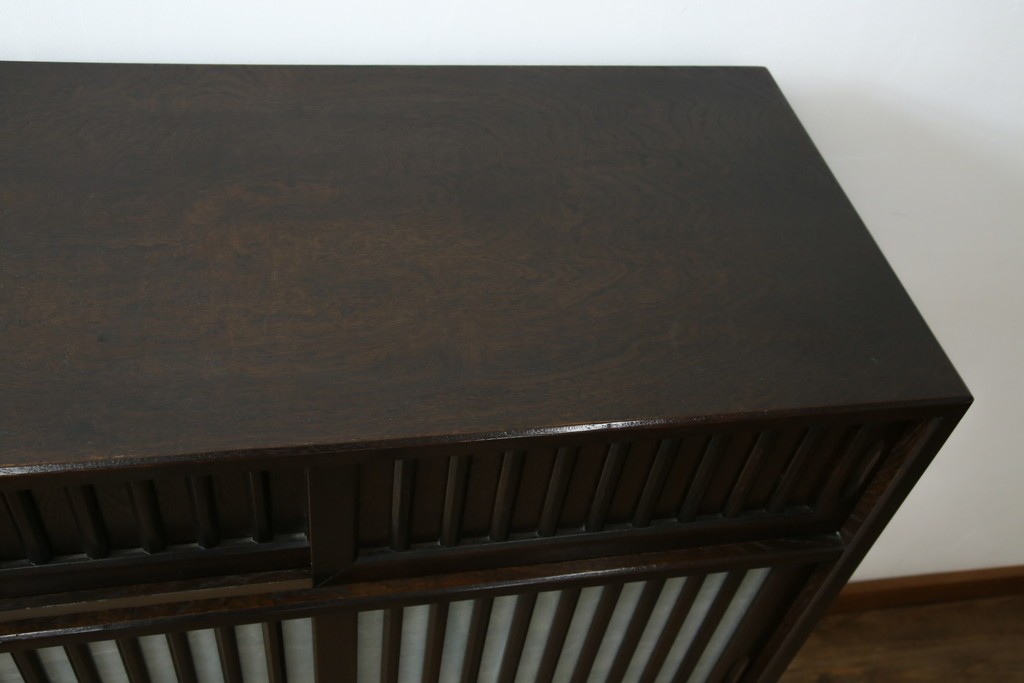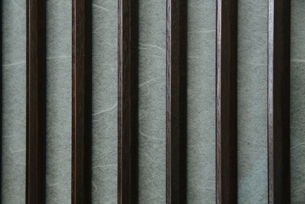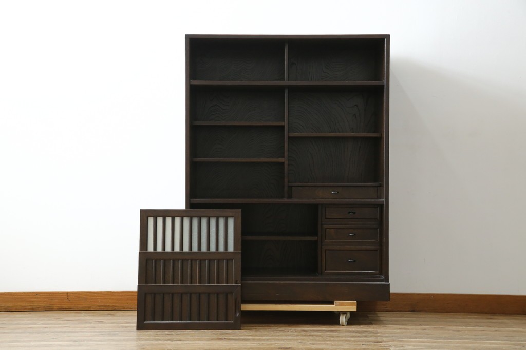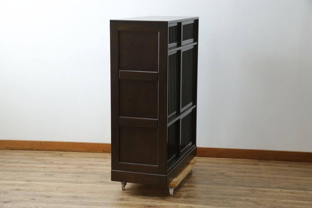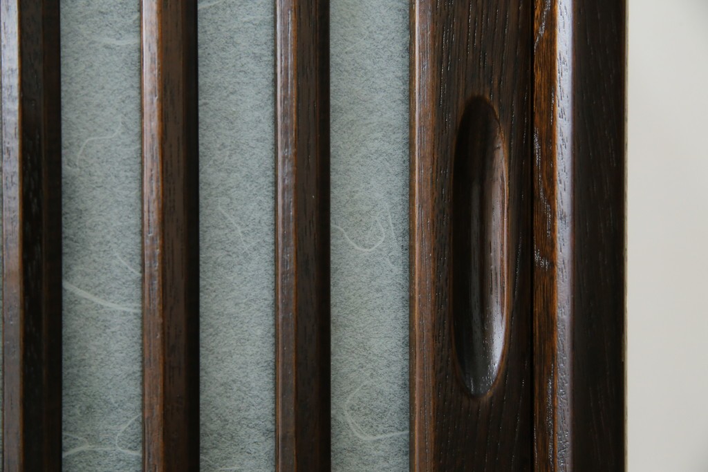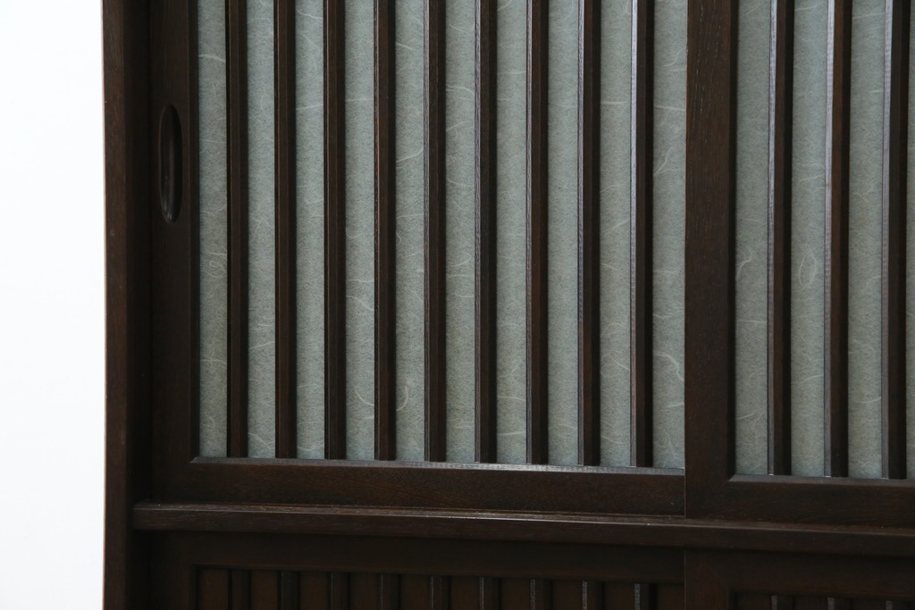 前面に整然と並ぶ格子が美しく、落ち着いた色味の木地が和の空間に調和します。