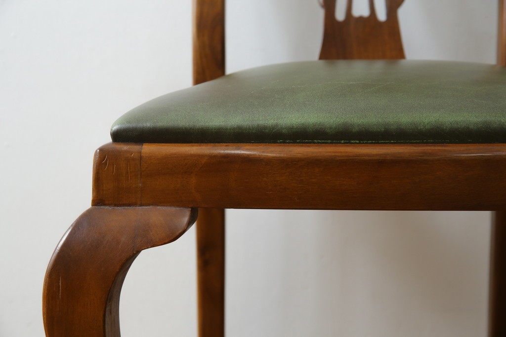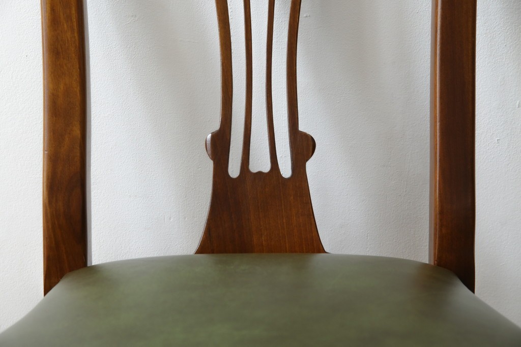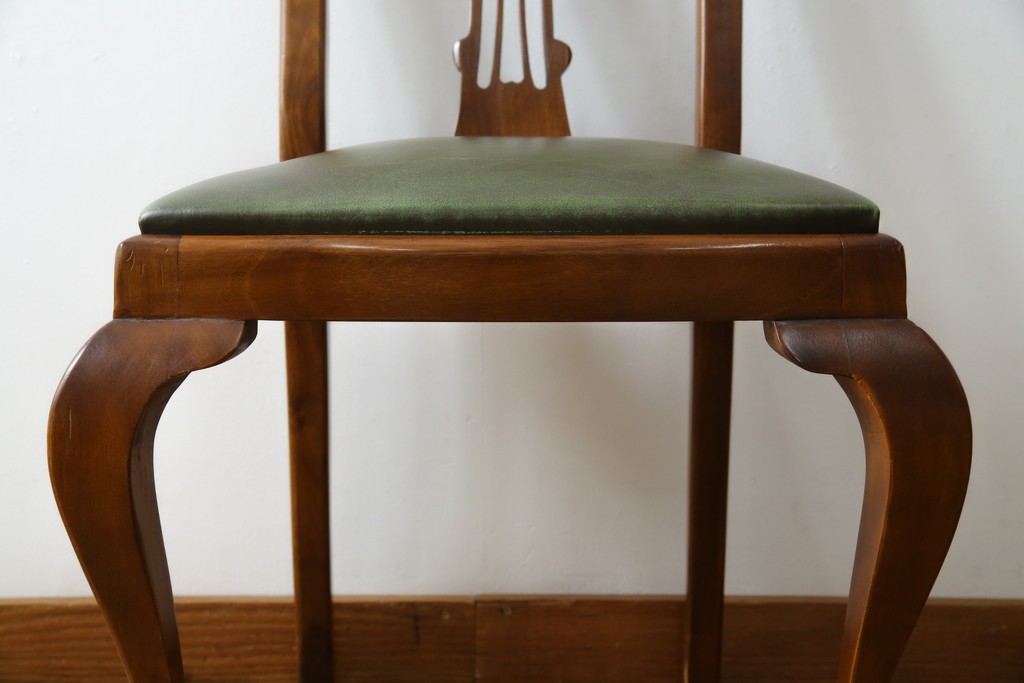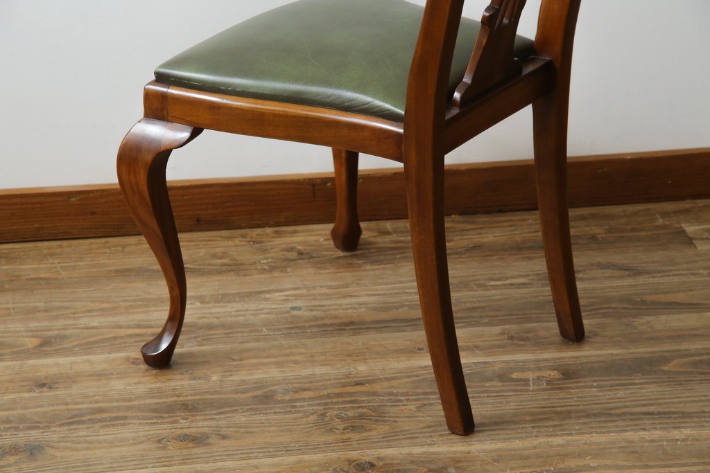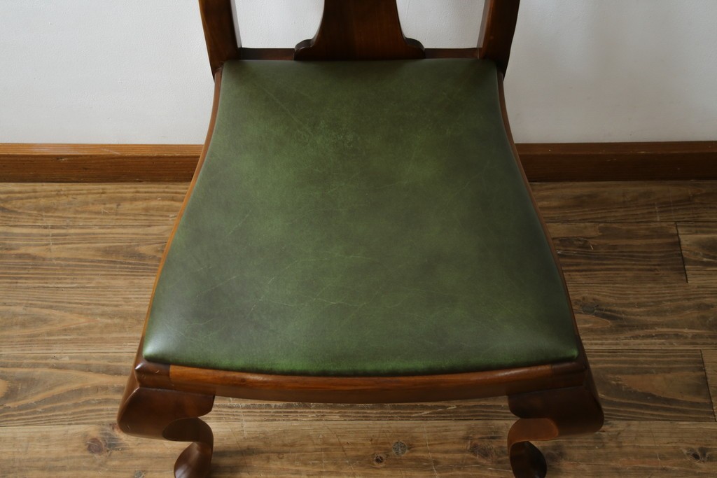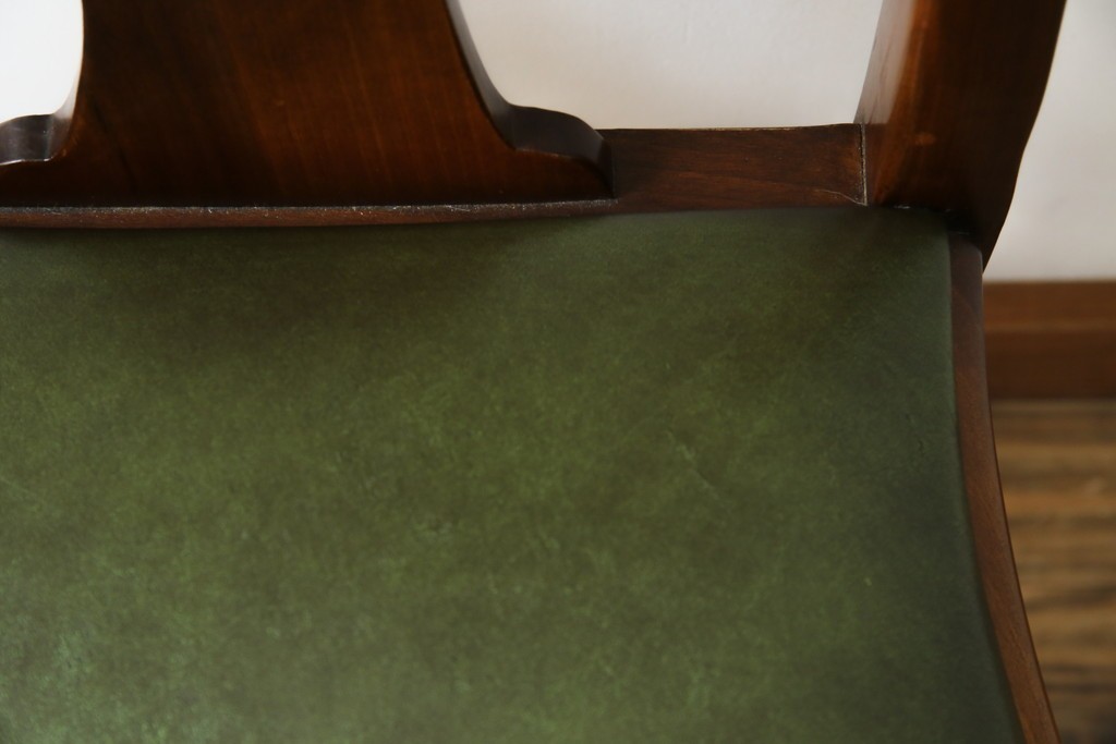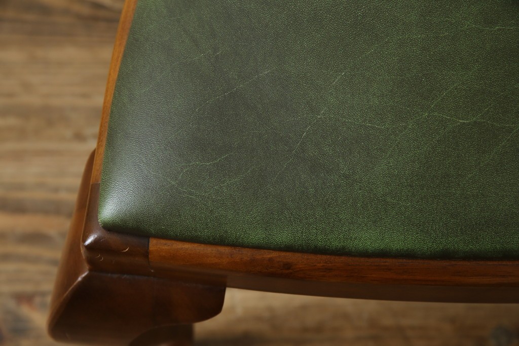 座面は深みのあるグリーンレザーで、ほどよい張りとしっとりとした質感が特徴です。