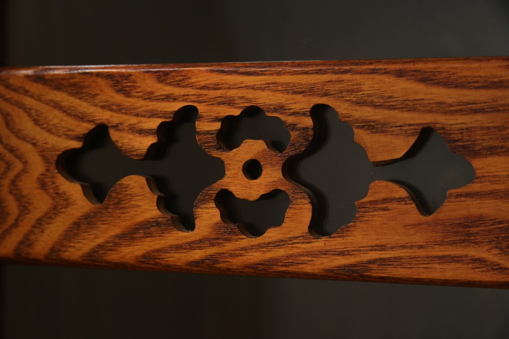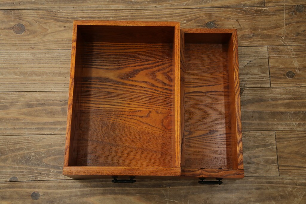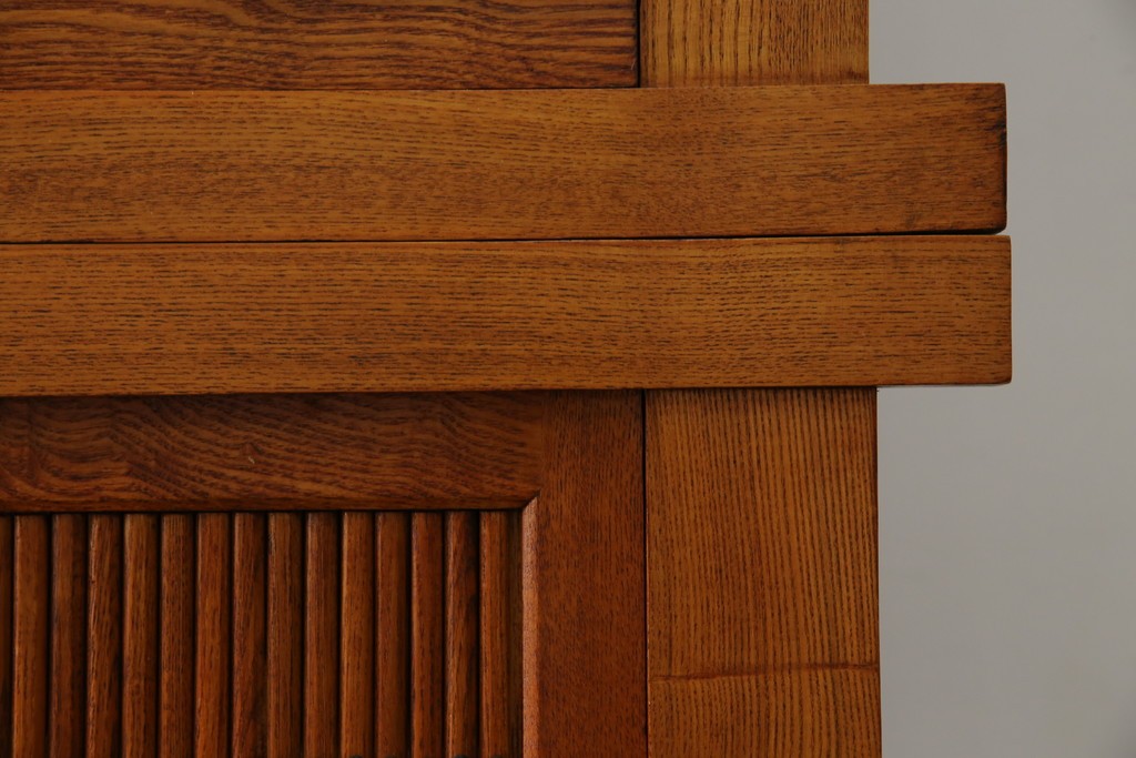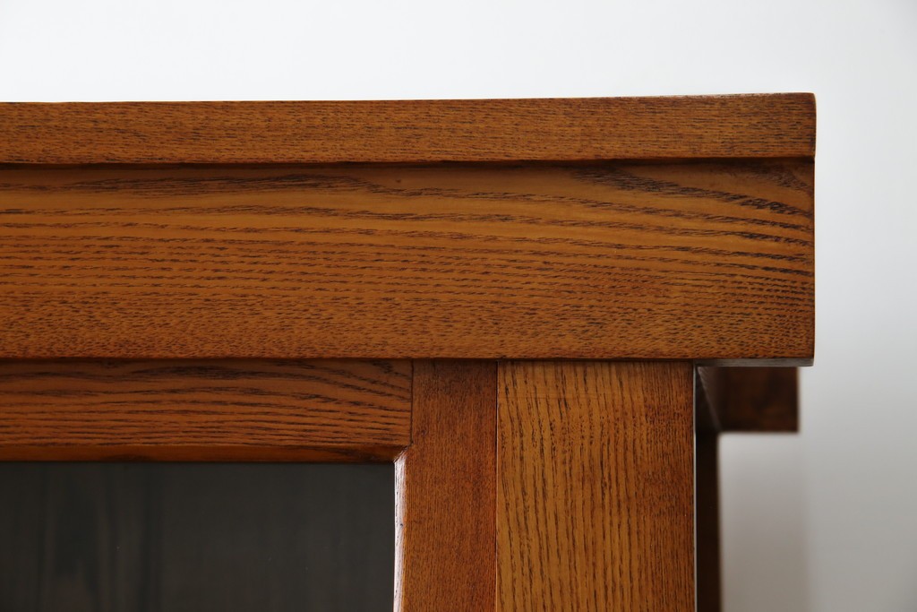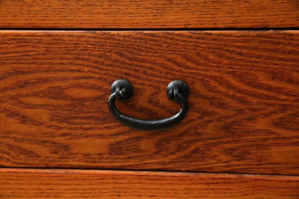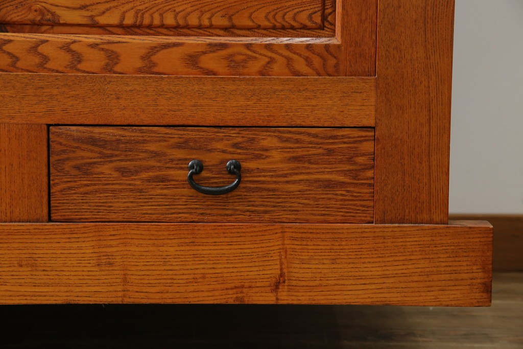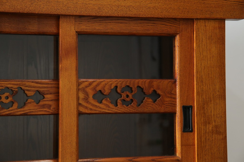 前面に施された細かな格子は、均整の取れた美しい仕上がりで、伝統的な職人技を感じさせます。扉や引き出しに使われた木肌には自然の木目が生かされ、光の当たり方で豊かな表情を見せます。日常の中に和の美しさを楽しめる、上質なつくりが印象的です。