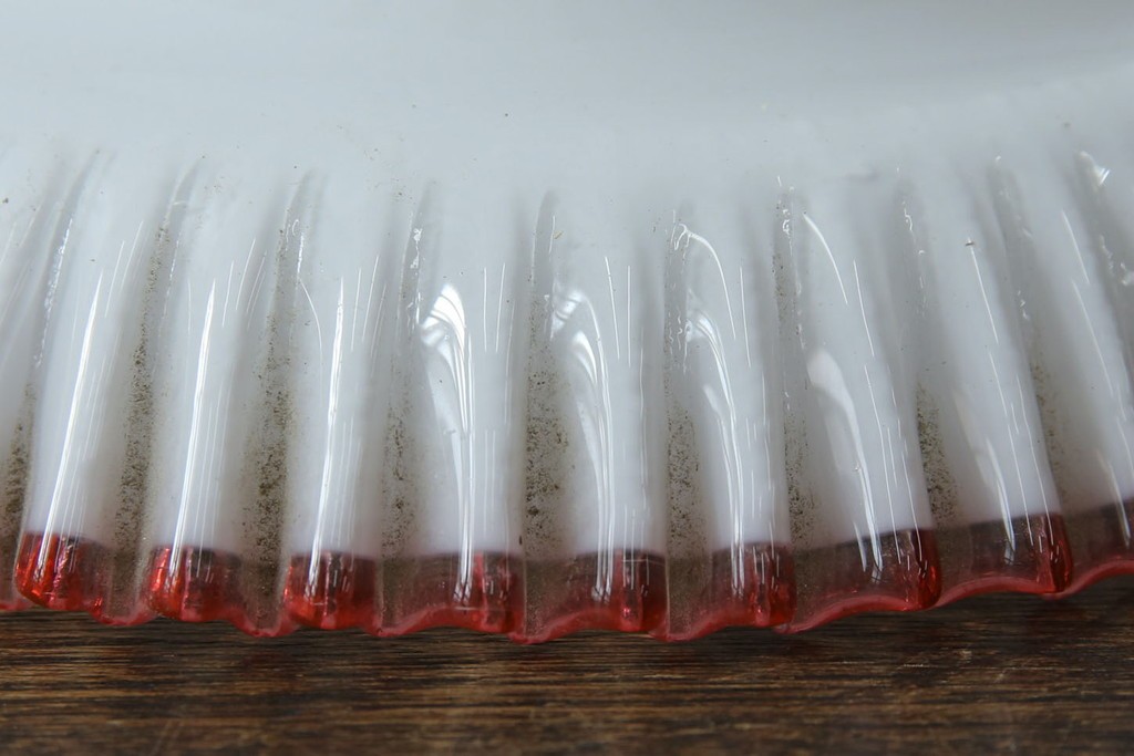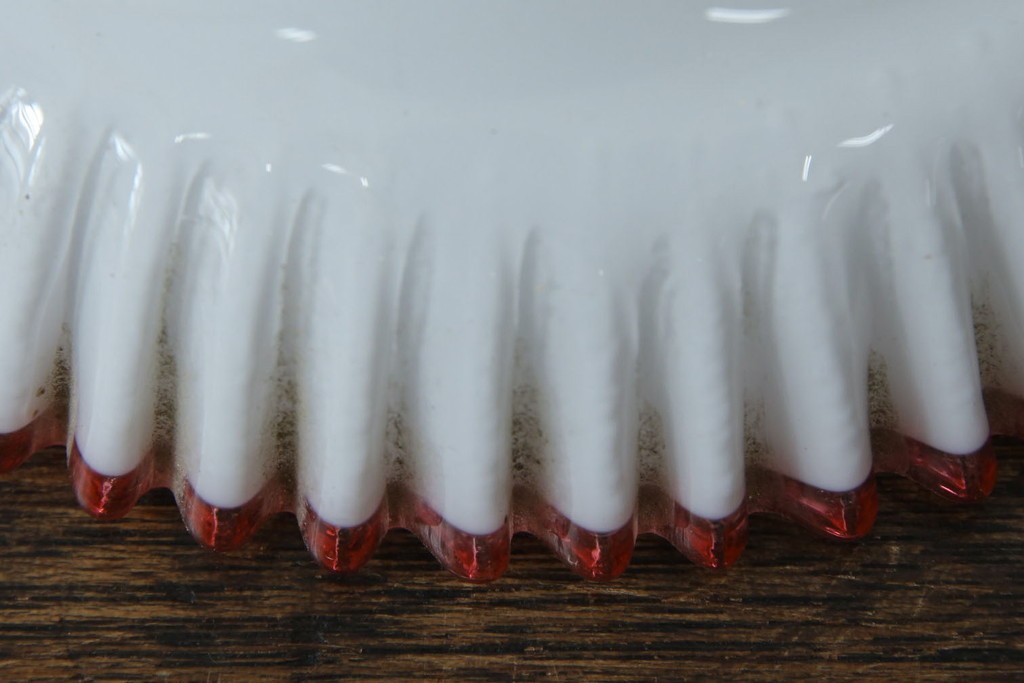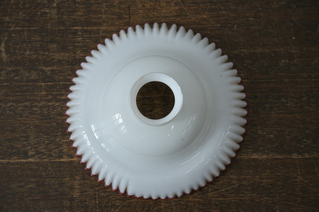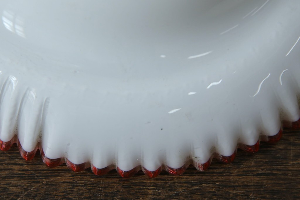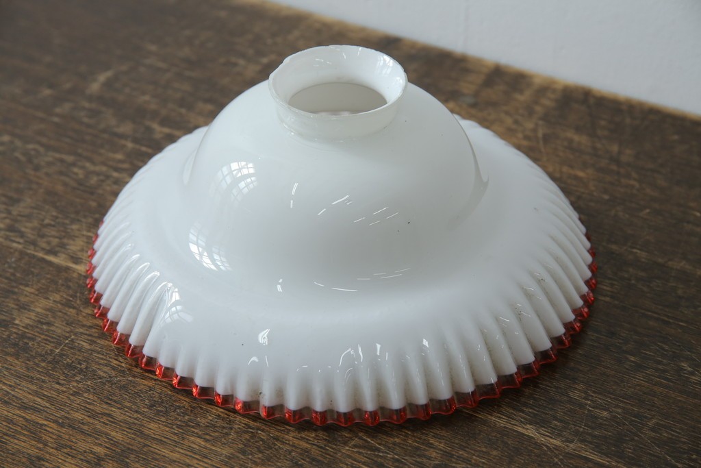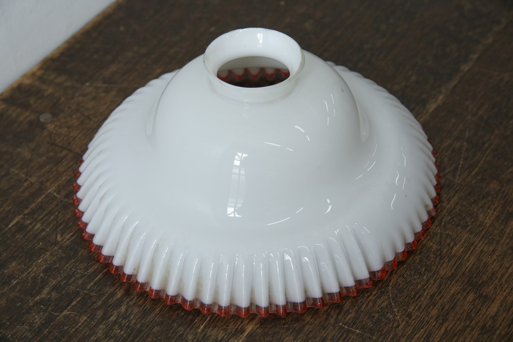 ラフジュ工房> 照明・ランプ > 《引っ掛けシーリング式ペンダントライト加工費込み》 和製アンティーク 時代物 大正~昭和初期 赤色の波打つ縁取りが特徴のペンダントライト (R-085438)