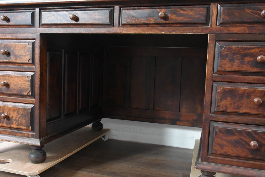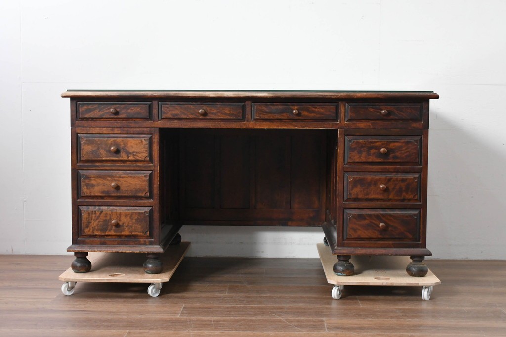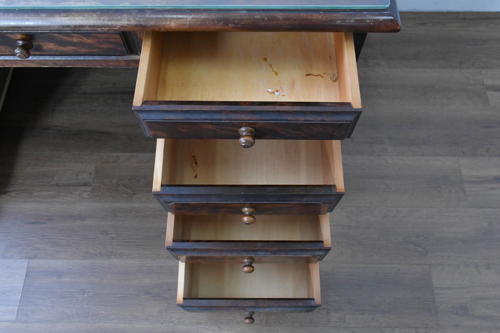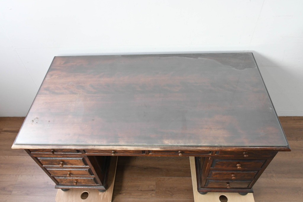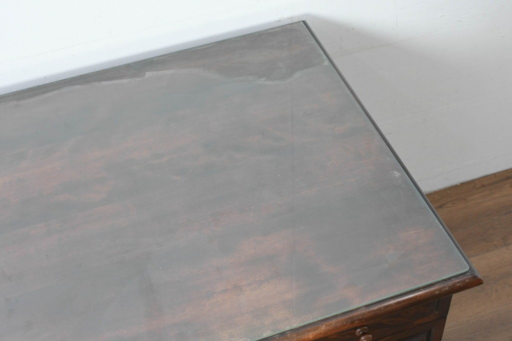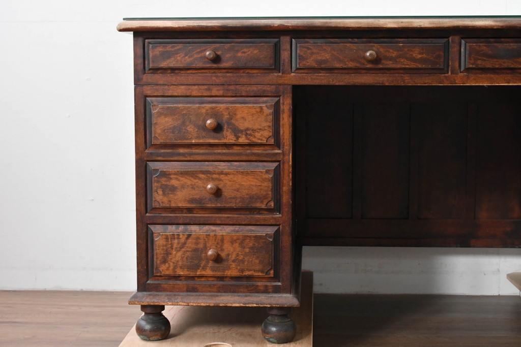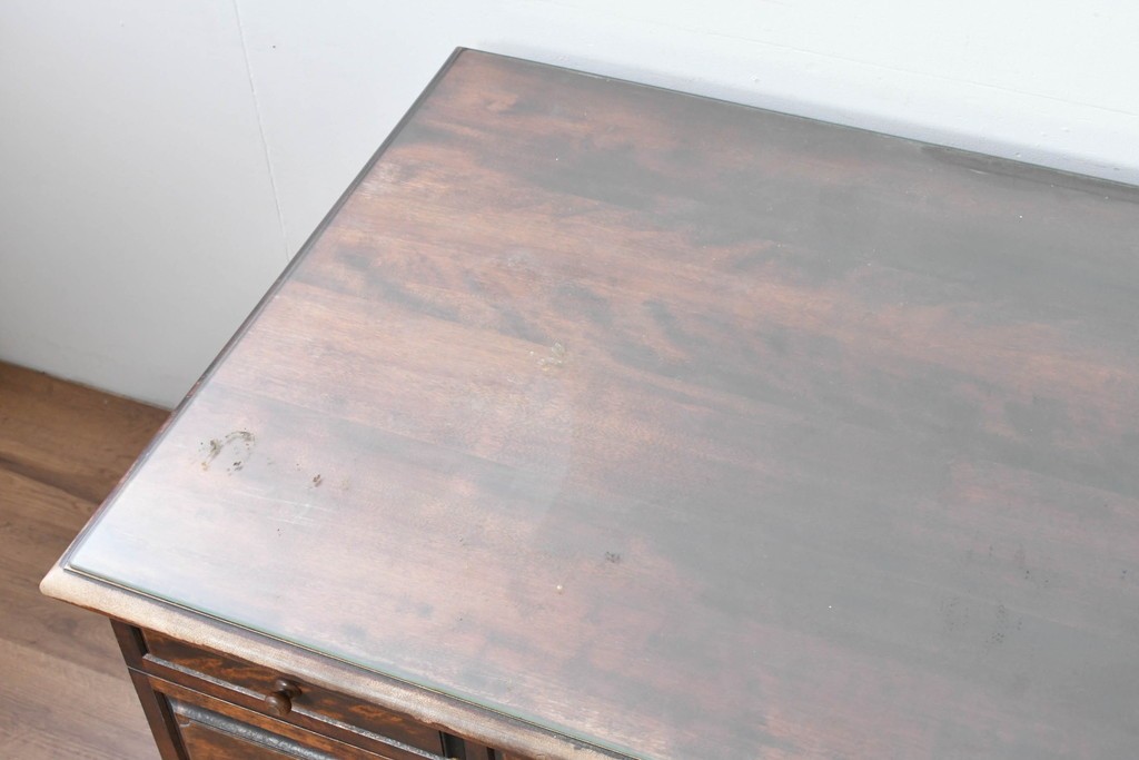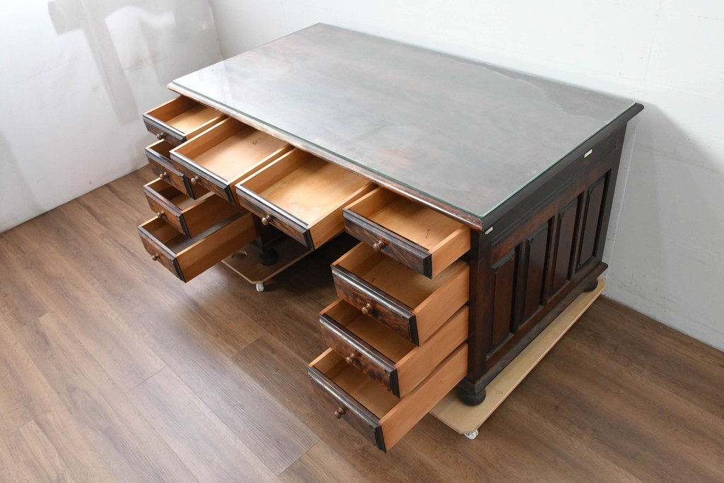 10杯引き出しに加え、天板下の小引き出しも充実。細かな文具から書類まで効率よく整理できます。ワークスペースを整えやすく、作業効率もアップ。見た目の重厚さだけでなく、日常使いしやすい実用性も揃う、職人家具ならではの優秀な造りです。