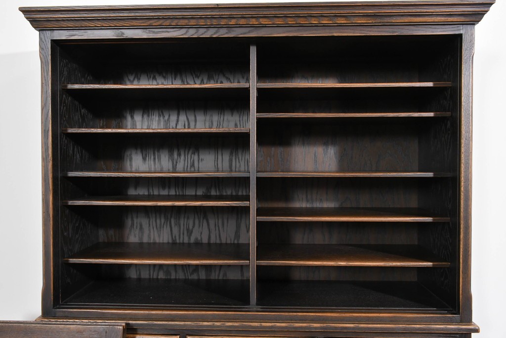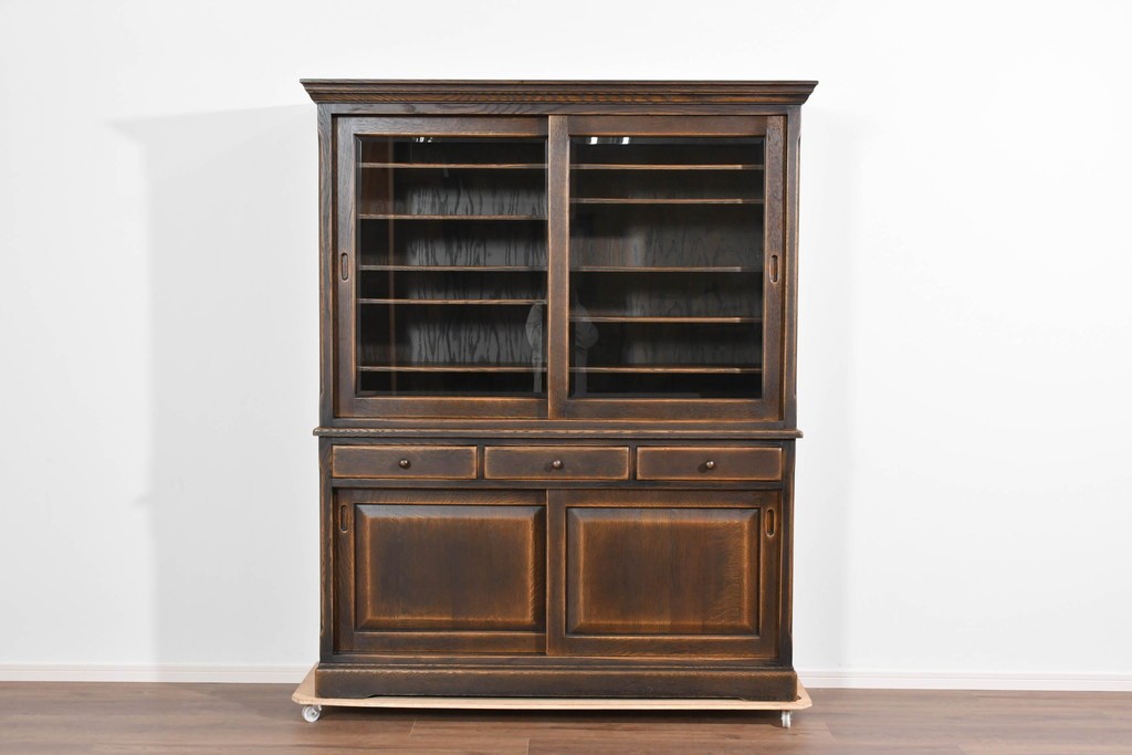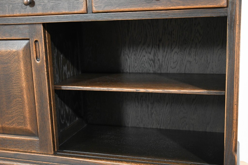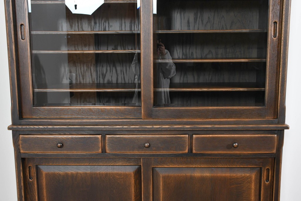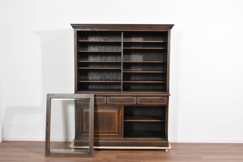 上段のガラス引き戸内部には細かく仕切られた棚があり、食器・本・雑貨などを整然と収納できます。