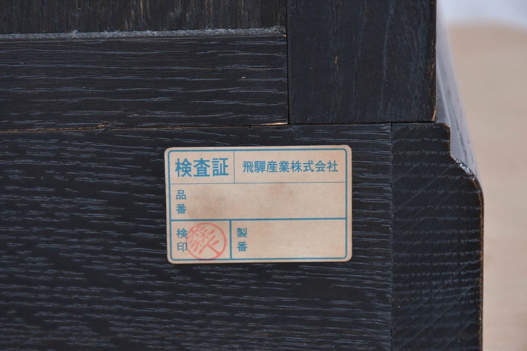 外観全体を覆う木肌は、深い色調の中にも木目の立体感が際立ち、飛騨産業の家具らしい味わいが十分に感じられます。