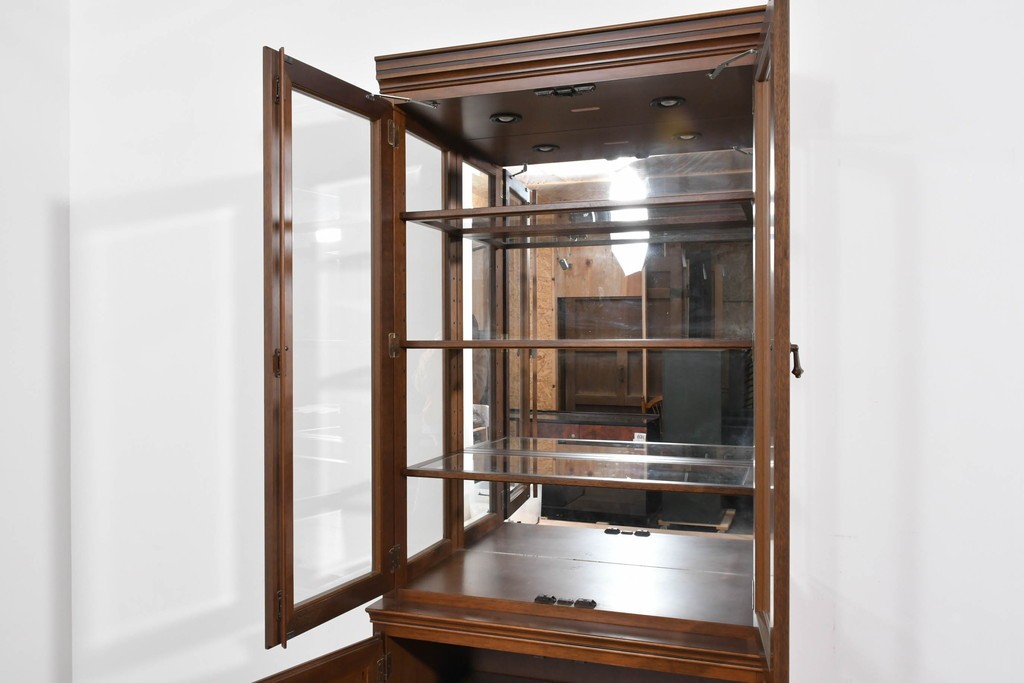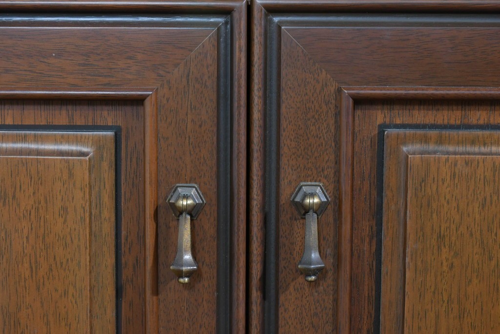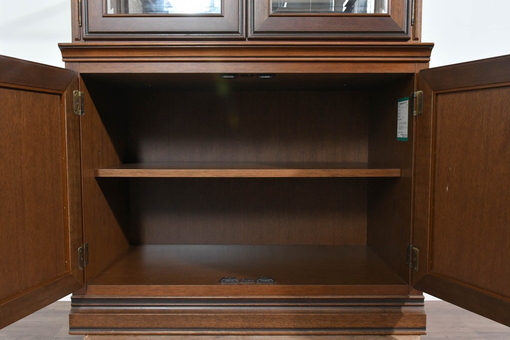 上部はガラス扉とガラス棚が組み合わされ、飾るものを美しく見せられるつくりとなっています。